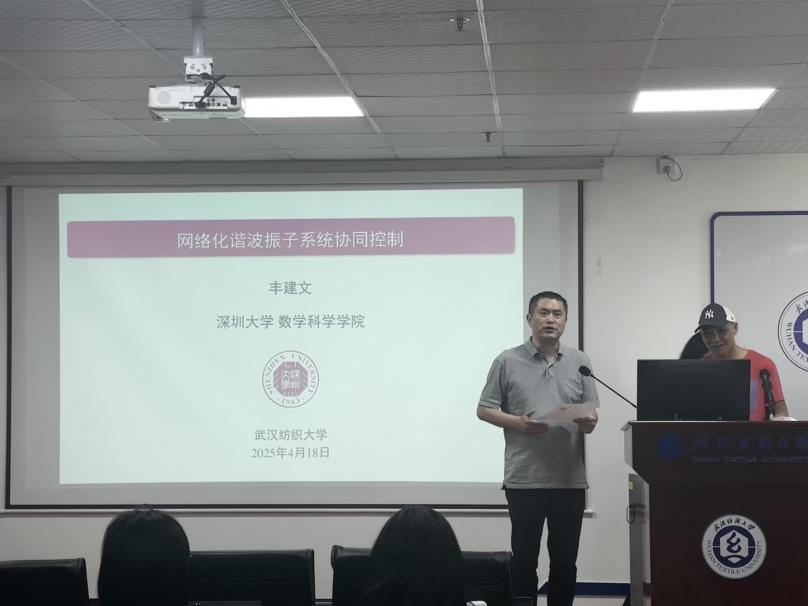 2025年4月18日上午9:30,402永利集团在崇真楼南楼A4030会议室举行了公司第784期阳光论坛,邀请来自深圳大学数学科学公司丰建文教授做了“网络化谐波振子系统协同控制”的报告。本次论坛由402永利集团副经理魏雄教授主持,402永利集团经理胡新荣教授、部分教师及研究生参与。