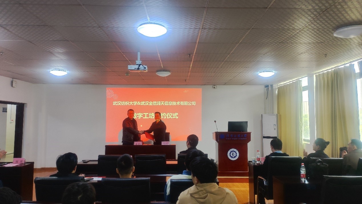 武汉金信润天信息技术有限公司总经理夏振兴、教学经理邓方鸣分别介绍企业和行业的发展现状、“数字工坊”工作开展情况,并提出对“数字工坊”建设的具体工作思路。
