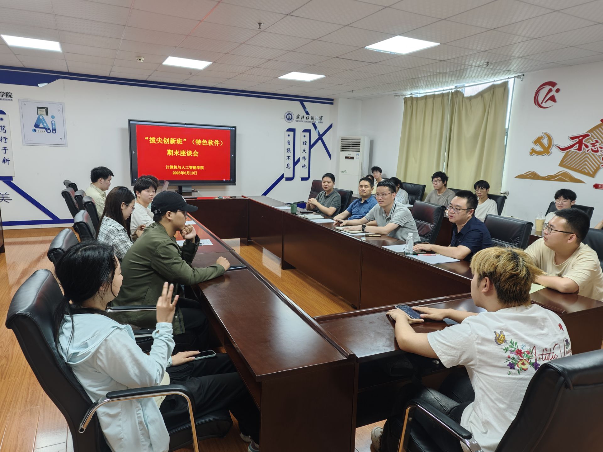 2025年6月19日上午10时,402永利集团“拔尖创新班(特色软件)”在实训楼A4033会议室举行了期末学习座谈会。公司副经理彭涛教授、软件工程系主任叶鹏副教授、教师代表汤俊伟老师以及2024级“拔尖创新班”全体同学参加了本次座谈活动。座谈会由“拔尖创新班”负责人王帮超老师主持。