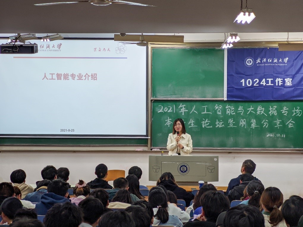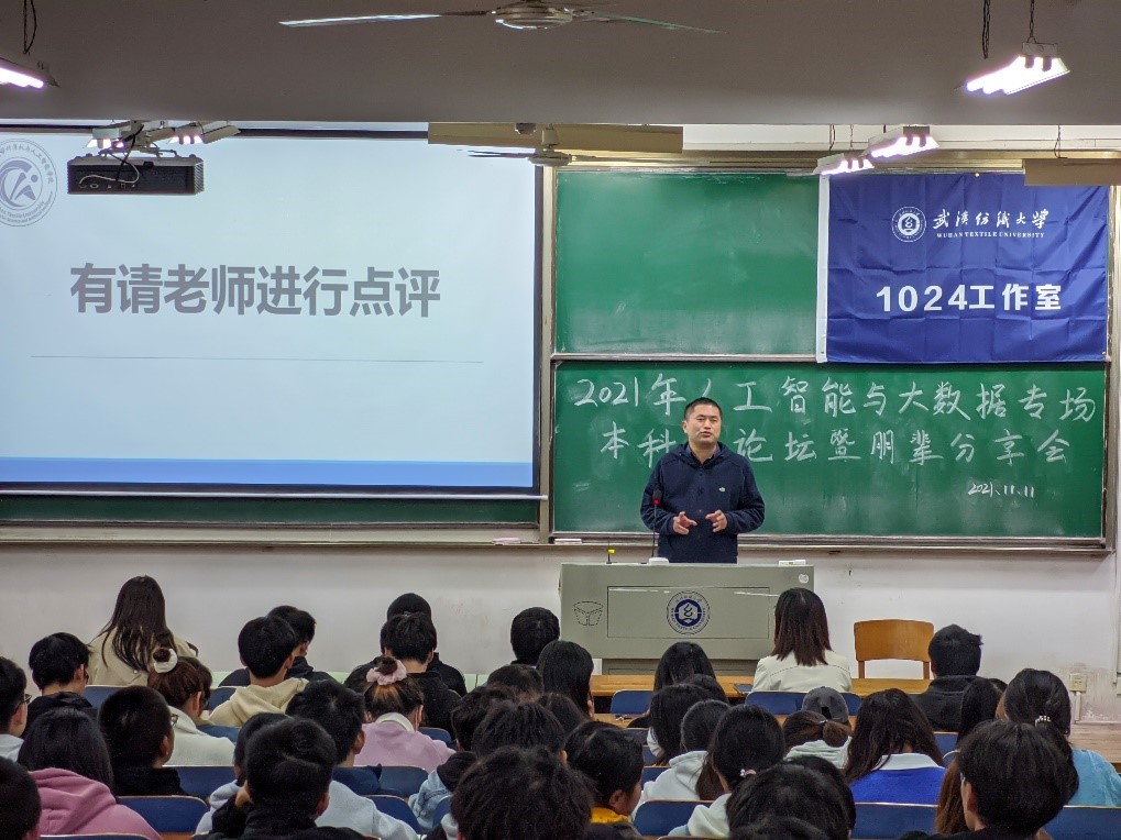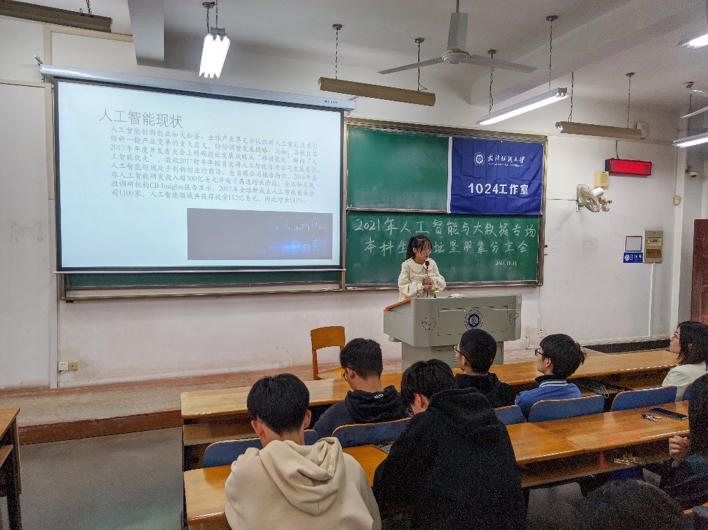 李丽对四位同学的分享和同学们参与论坛的热情与态度给予了充分肯定。并以专业的视角向在座同学们分析了人工智能专业的背景与定位,她强调人工智能已上升至国家战略高度,发展人工智能势在必行,人工智能专业的设立可以推动多学科交叉融合,为传统学科的进一步发展开拓新的思路。她也为同学们讲解了人工智能专业人才培养方案与定位,旨在提升大家的专业自信度,虽然人工智能是公司新开设的专业,但在社会大环境与公司和公司的大力支持下一定会蓬勃发展,未来可期。