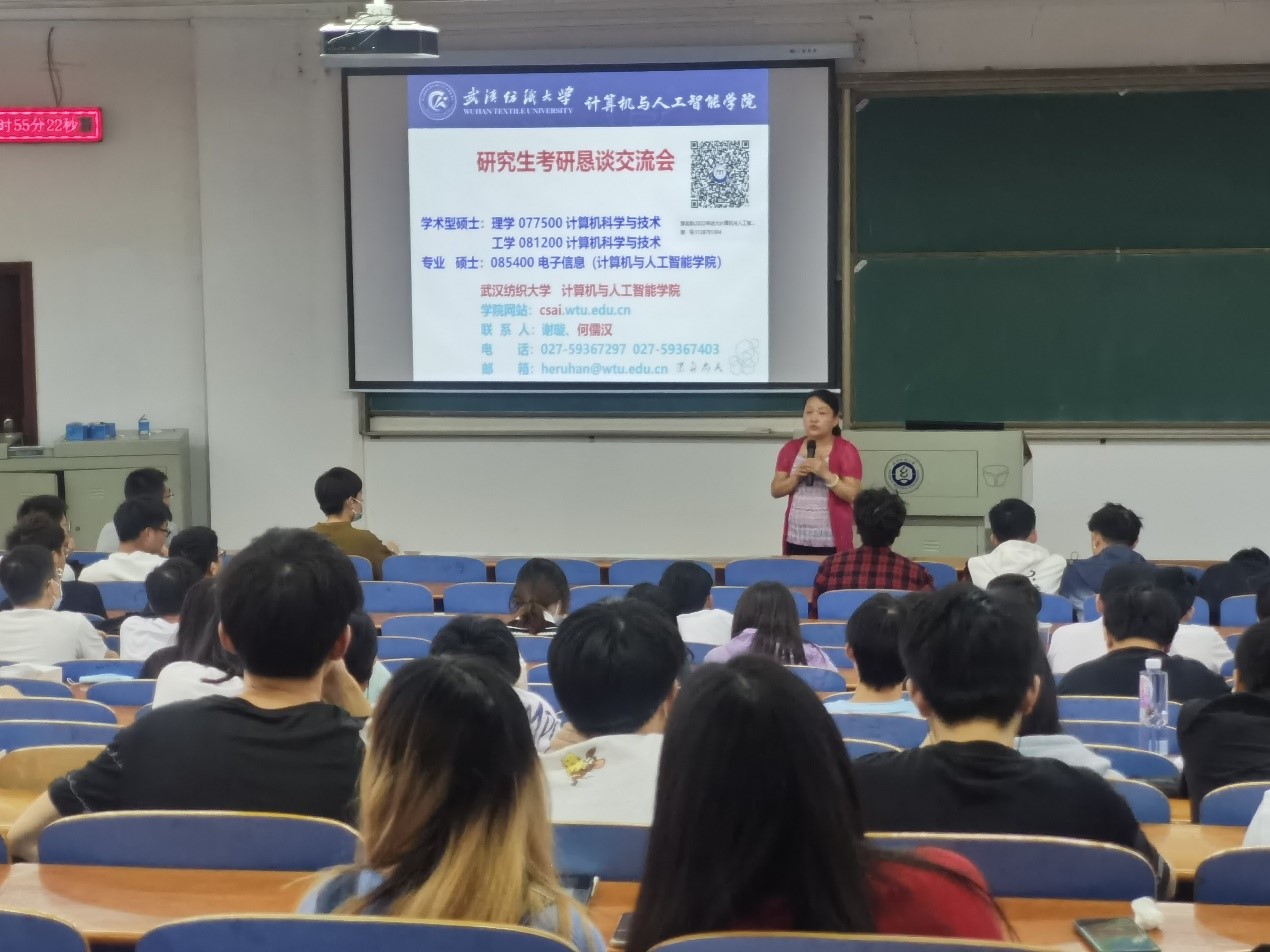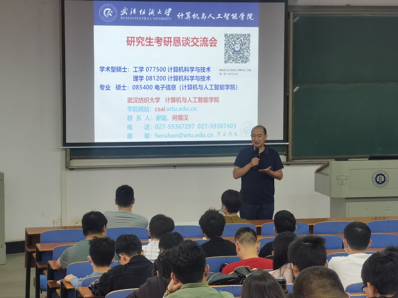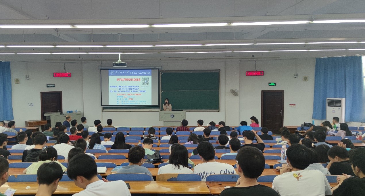 何儒汉副经理首先进行发言,就公司研究生招生政策与导师情况进行介绍,他分别从公司学位点、研究生导师、研究平台、在校研究生规模、每年招生规模、以及公司产品质量等方面情况展开宣讲。他指出,公司导师有很好的培养研究生的经验和能力,学术活动丰富多样,公司提供给研究生的平台资源充足,能够满足大家在研究生阶段的研究需求。他分析了报考本院研究生的备考优势,鼓励同学们积极报考本校,同时也强调了前期备考的注意事项,以及诚信考试的必要性与重要性。