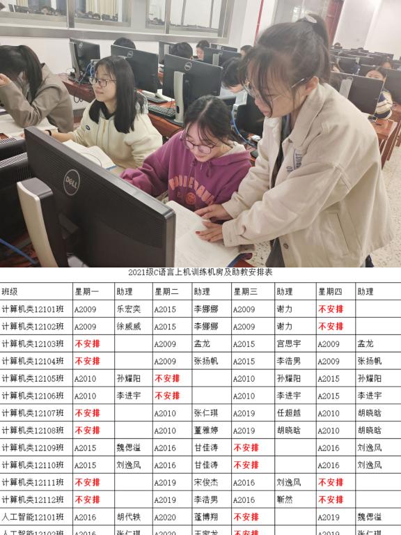 经过前期与公司领导、专任老师、实验员老师、辅导员及C语言助理相互协调,在班级助理的指导下,同学们井然有序地进入机房进行上机操作。公司经理胡新荣、副书记涂耀威及实践教学组负责老师李帆老师反复研究实施方案,在公司教学工作研讨会上专门做报告,2021级辅导员谢瑞清和高年级班助,走访机房,关心同学们的学习状态,协助解决学习中的问题。