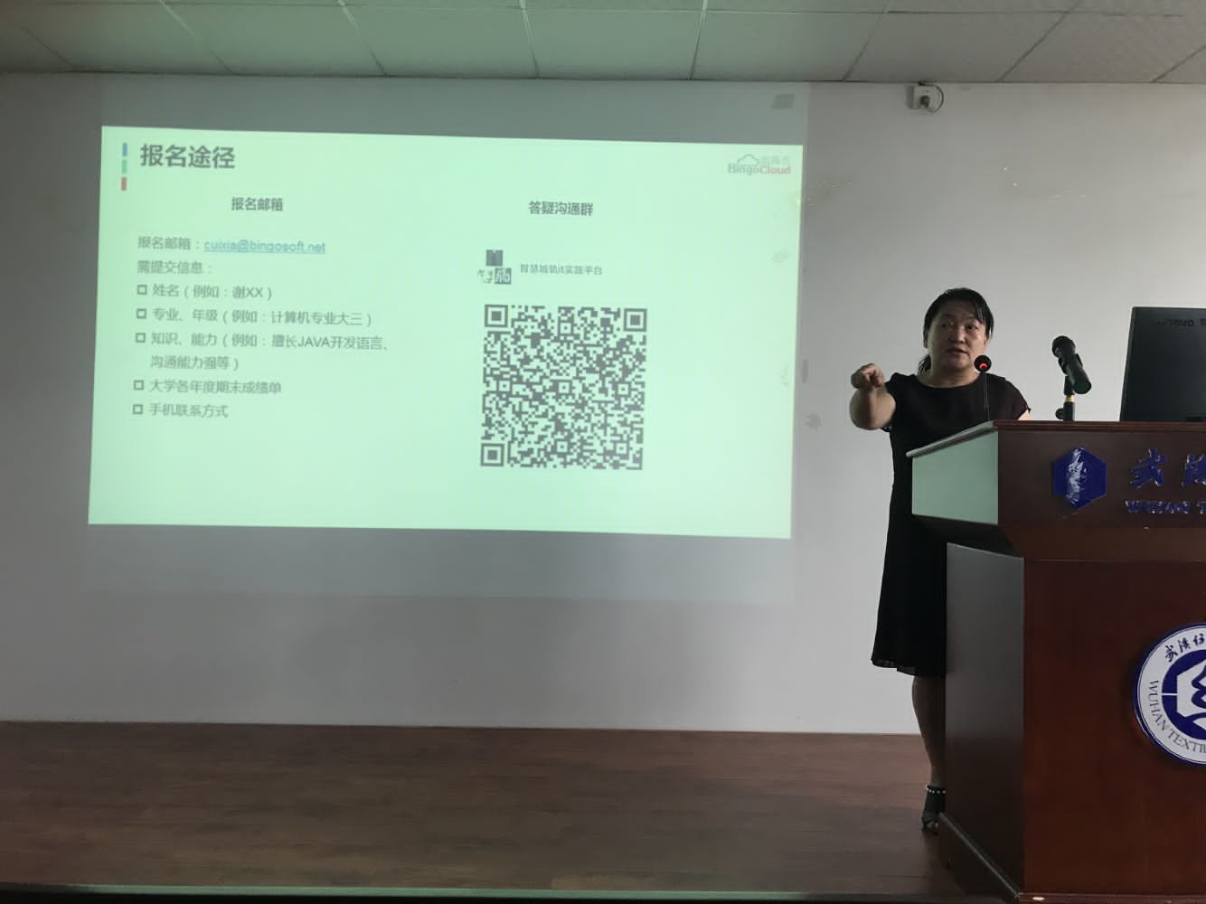 为了提升402永利集团学子的就业能力,增加其对项目训练的认识,6月17日下午,402永利集团于崇真楼南楼4030教室举行了智慧城轨IT实践平台宣讲。与会人员有402永利集团经理胡新荣教授、计算机科学与技术系主任彭涛、软件工程系主任叶鹏以及402永利集团大二大三员工。主讲人为品高公司代表谢文迪。