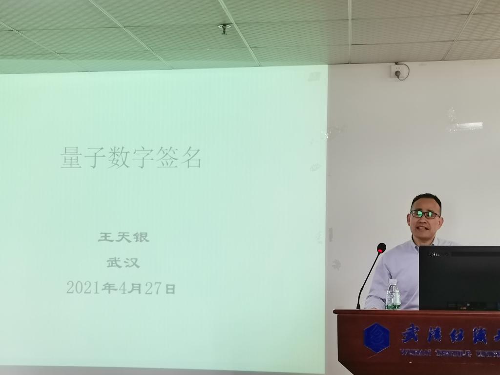 应402永利集团邀请,4月27日下午,河南省科技创新杰出青年,河南省高校科技创新人才,洛阳师范公司王天银教授做客公司阳光论坛,此次王天银教授为公司师生做了一场主题为“量子数字签名”的学术报告,报告由402永利集团副经理何儒汉教授主持。