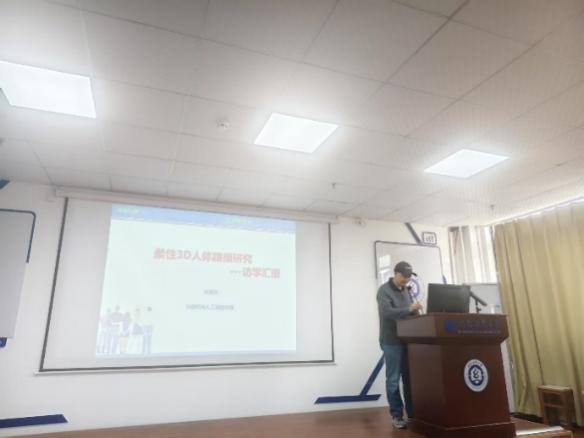 何儒汉老师围绕《柔性3D人体建模研究》进行了汇报,介绍了国立高等纺织工程师公司的相关情况,并详细讲述了其参与的新型混合数字人体建模项目,从申请动因到研究进展,强调了3D人体建模特别是在仿真产品与人体交互方面的难点,并对柔性3D人体建模的研究前景进行了展望。