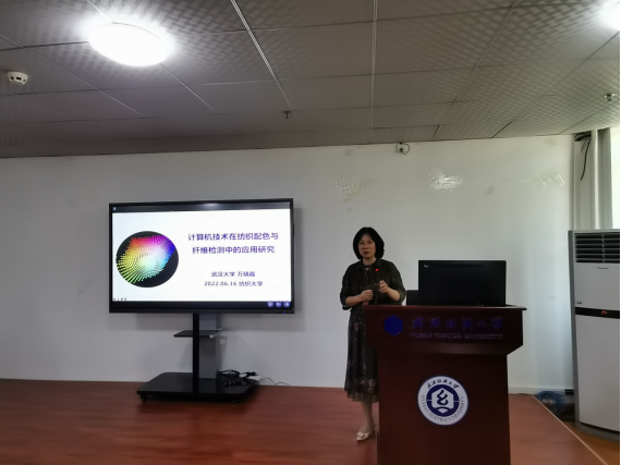 6月16日,教育部轻工类教学指导委员会副主任委员、武汉大学博士生导师万晓霞教授应邀来校做客阳光论坛,此次万教授为公司师生做了一场主题为“计算机技术在纺织配色与纤维检测中的应用研究”的学术报告,报告由402永利集团青年博士梁金星老师主持,公司在校教师和研究生参加本次讲座。
