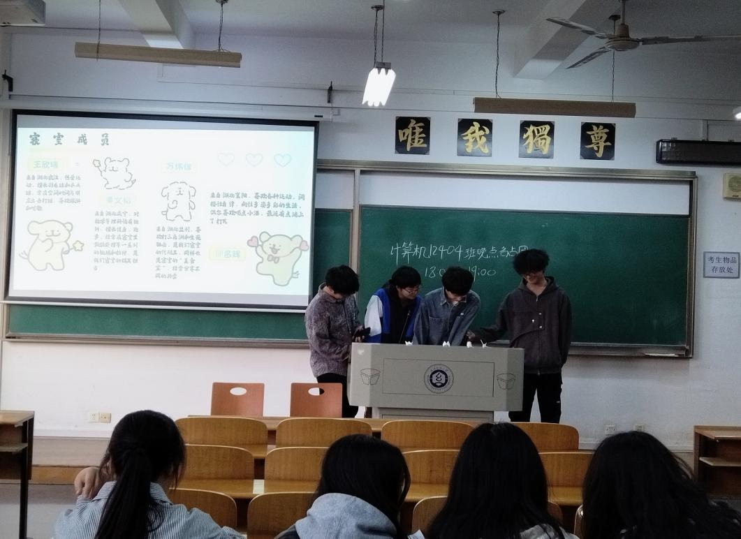 4B514 寝室长王欣瑞详细介绍了每个寝室成员:王欣瑞热爱运动,擅长羽毛球和乒乓球,并多次参加公司的比赛取得优异的成绩,虽然C语言挂科,但他决心在新的学期里和室友互相督促以提高成绩;黄文韬是宿舍里的搞笑担当,擅长健身,跑步,对数学等理科情有独钟,虽然在上学期的学习中英语挂科,但这学期决心合理分配时间,争取期末不挂科;万伟信是寝室的代码王和“美食家”,参加了蓝桥杯等竞赛,同时注重劳逸结合,闲暇期间会通过游戏来放松自我;卻昌辉喜欢各种运动,参加了大英竞赛,并积极参加太极拳等校园活动。王欣瑞表示他们寝室整体学风不浓,参加活动积极性不高,但在新学期将会整顿学风。