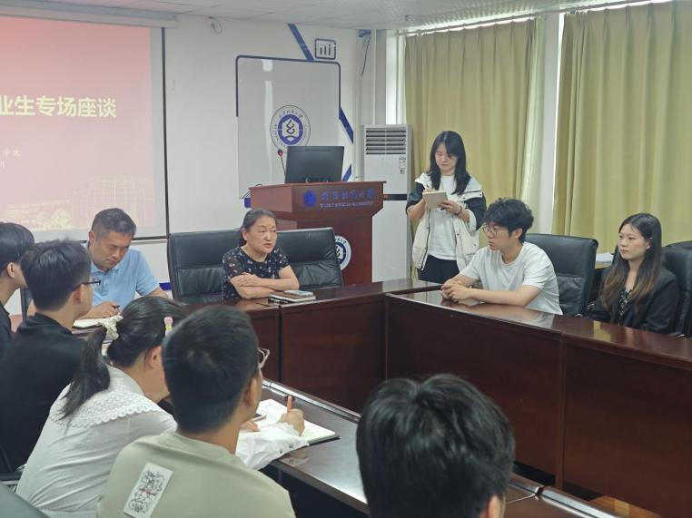 为进一步加强公司与研究生的沟通交流,及时了解和解决同学们在学习、科研、就业等方面遇到的问题,持续提升人才培养质量,6月10日,公司在阳光校区崇真南楼A4030举办了"经理有约之硕士毕业生专场座谈"活动。经理胡新荣、副经理魏雄、研究生辅导员余梦帆出席活动,硕士毕业生代表及23级、24级研究生员工代表参加座谈。