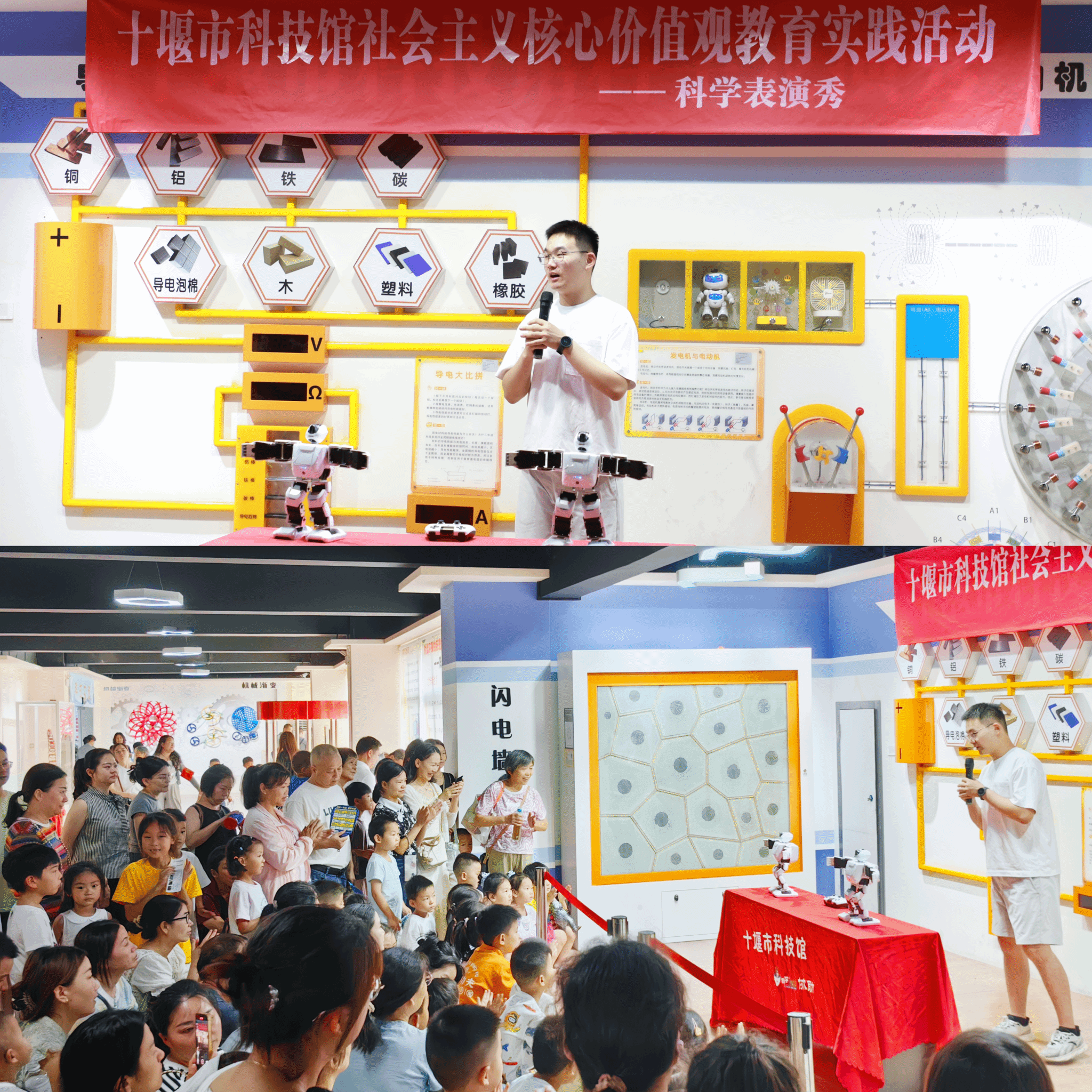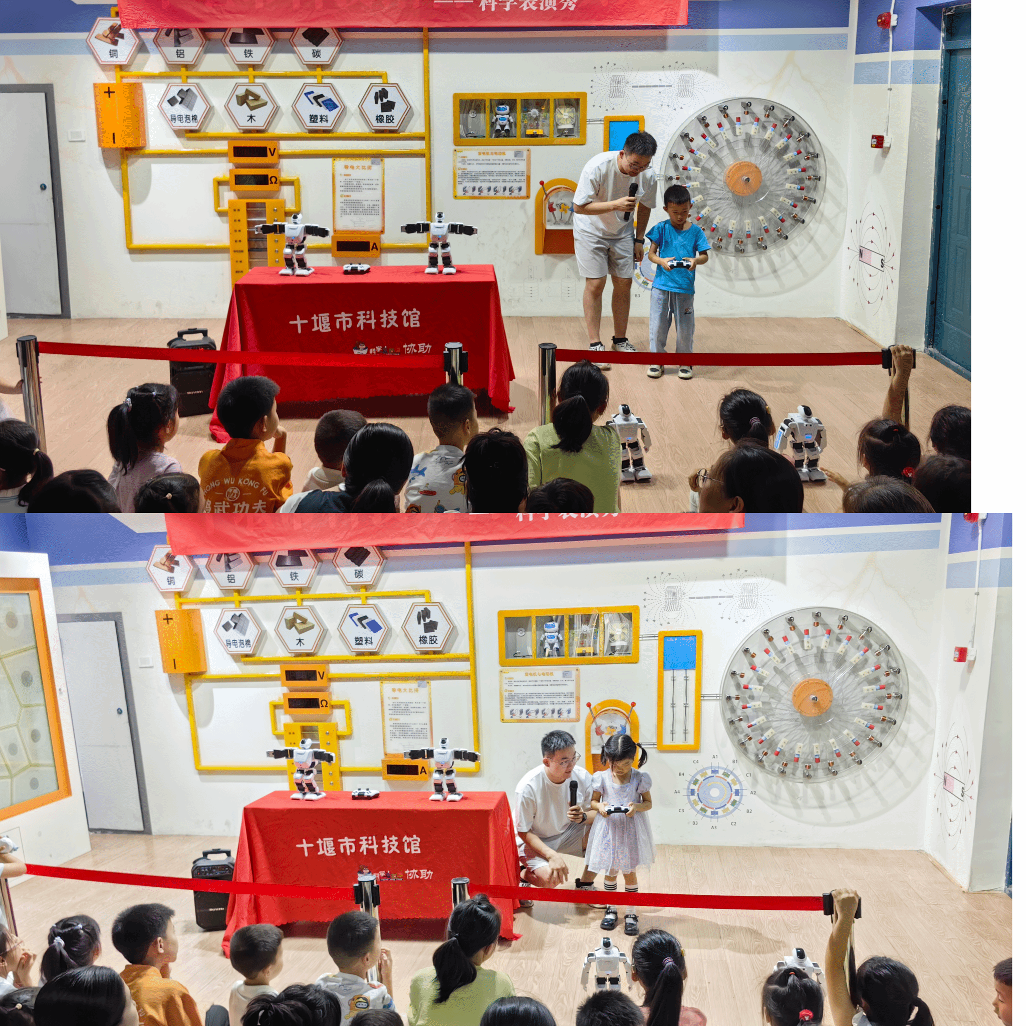 在国家大力推进人工智能教育、着力提升青少年 AI 素养的时代浪潮下,基层人工智能教育资源的补充与优化成为教育领域的重要课题。6月21日,402永利集团 “智启童心” 实践团立足学科专业优势,创新实践形式,以 “AI 教育赋能童心成长” 为核心,走进十堰科技馆开展 “人工智能科普”机器人表演秀活动。