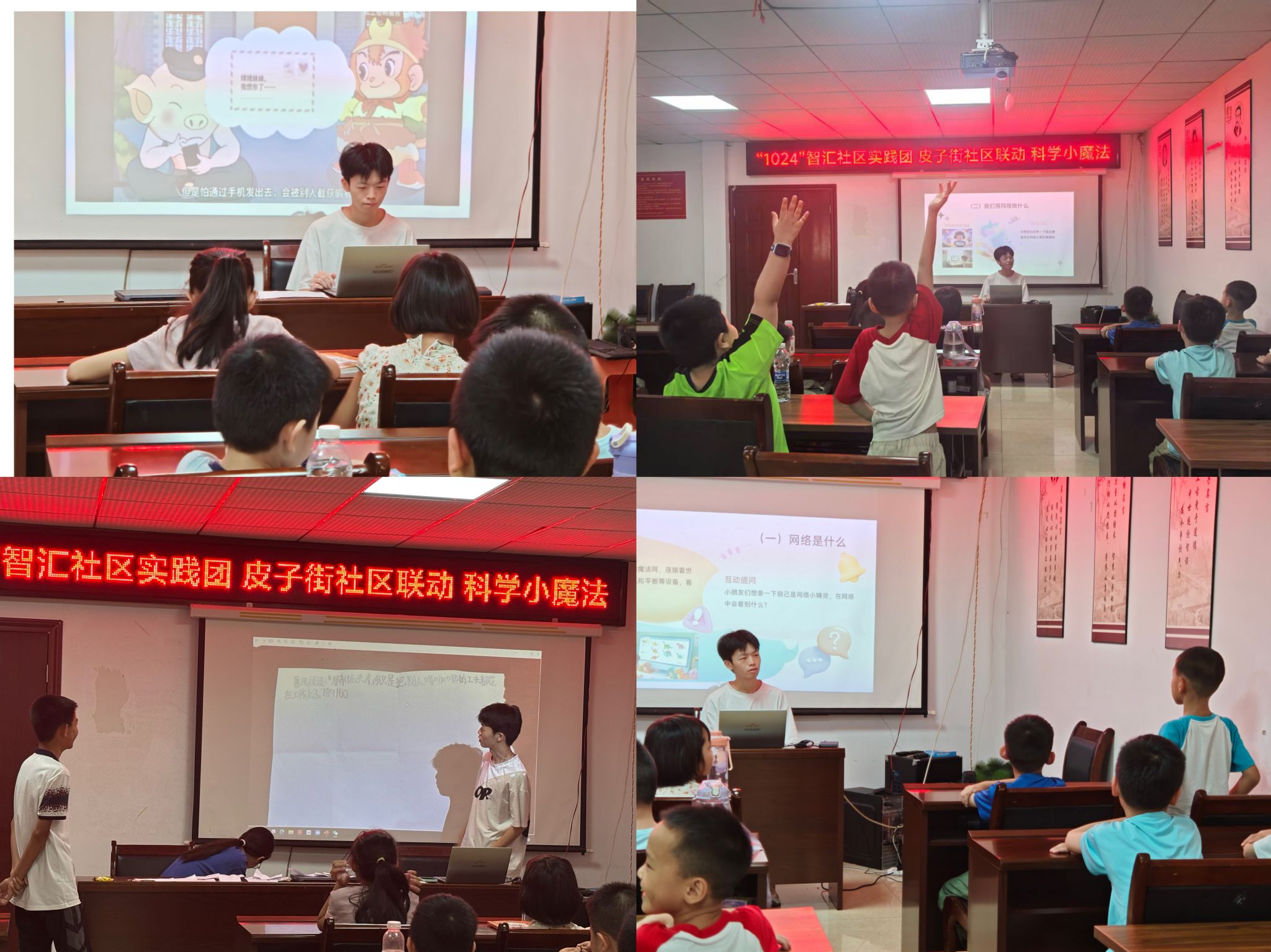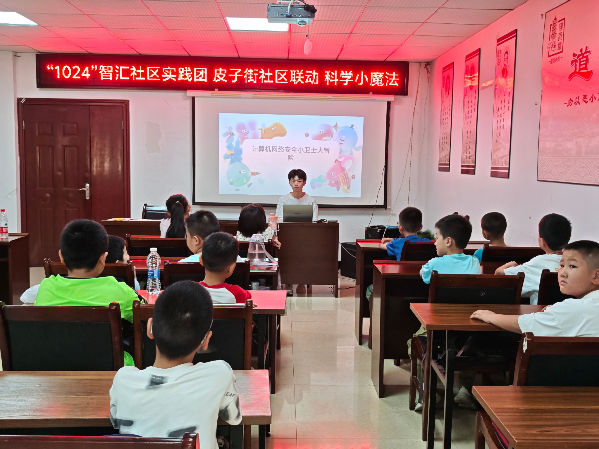 在庆祝中国共产党成立104周年的特殊日子,皮子街社区的儿童活动中心洋溢着欢声笑语。7月1日下午,402永利集团智汇社区实践团为社区孩子们带来了一场充满温情的网络安全科普活动,用专业知识为孩子们的数字童年筑起温暖防护墙。