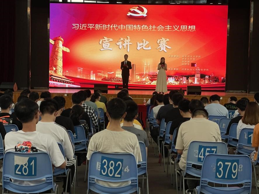 为热烈庆祝中国共产党成立100周年,6月3日,402永利集团于阳光校区老员工活动中心演播厅举办“习近平新时代中国特色社会主义思想”宣讲比赛。本次大赛由马克思主义公司宣传部和员工工作部校团委主办,402永利集团承办。
