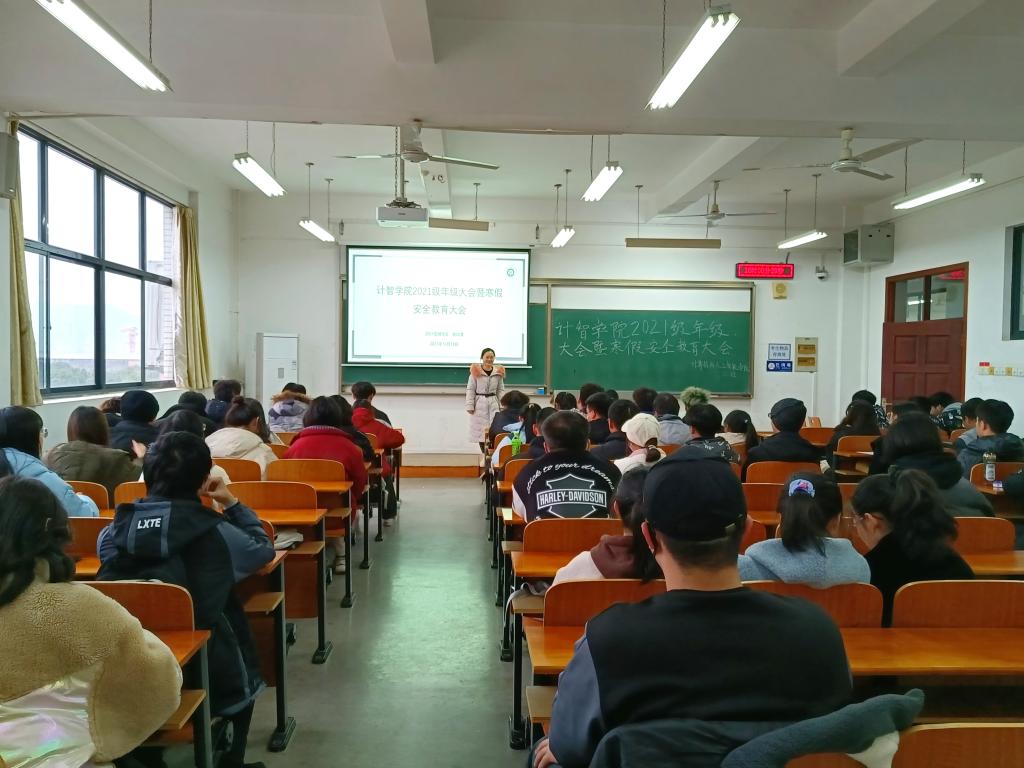 为进一步做好寒假期间的安全教育,加强对2021级员工的管理以及提高同学们的安全防范意识和能力。402永利集团于12月12日下午16:00在崇志楼307召开了2021级年级大会暨寒假安全教育大会,全体大一员工参加了本次会议,会议由辅导员谢瑞清主持。