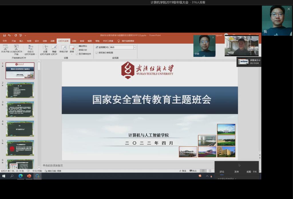 班会最后,各班组织同学们观看“千万师生共上一堂国家安全教育”的线上公开课、“国家安全大宣讲”决赛现场等活动,进一步加强了同学们的安全意识。