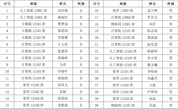 经公司对所有同学的复试成绩、在校表现以及综合实力的评估,将聘用以下30名同学为2022级副班主任,聘期为一学年。具体名单如下:
