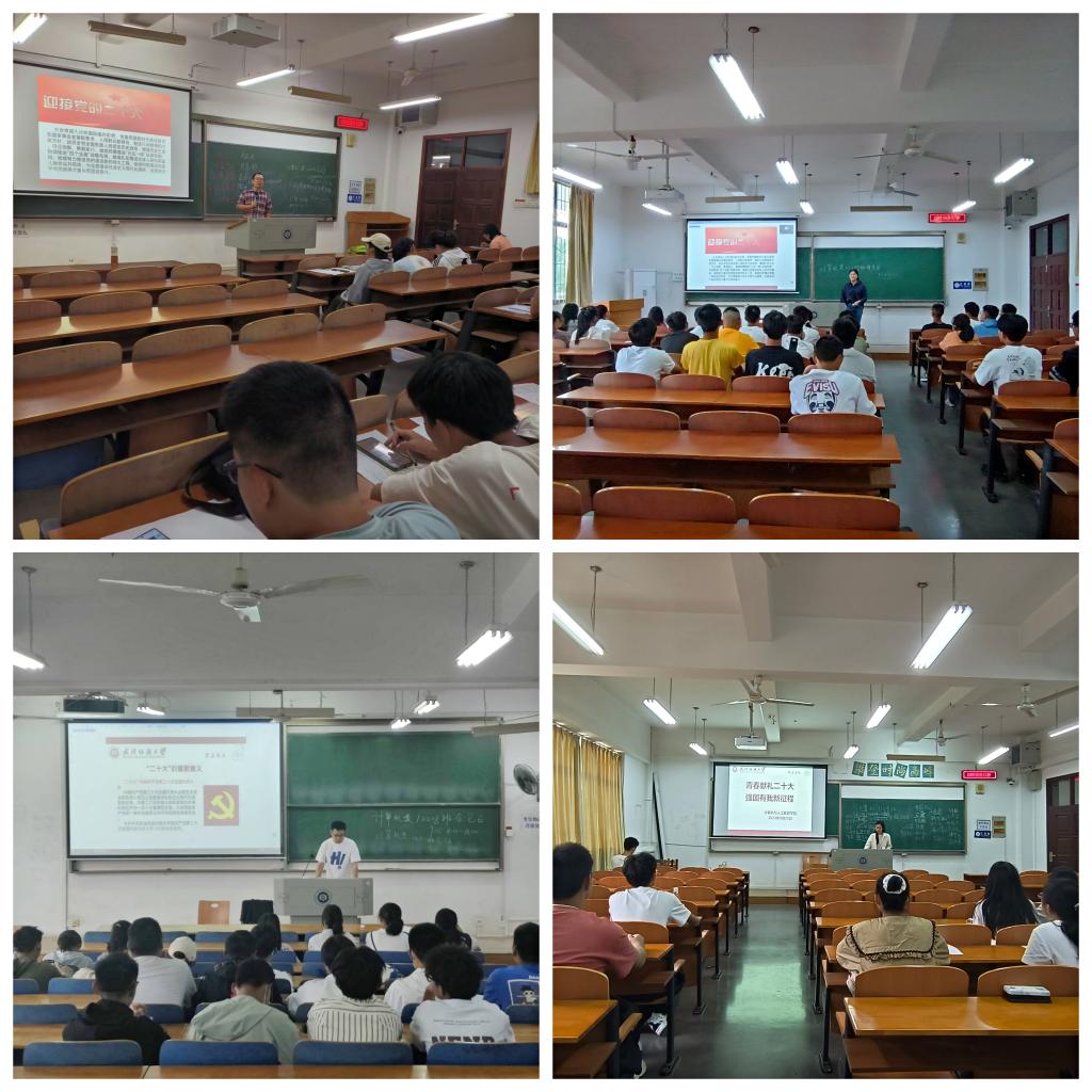 其他年级根据专业、班级分别开展了系列主题班会,纷纷学习了解二十大召开的背景和意义,深刻感悟爱国主义情怀。学习优秀员工事迹,感悟爱校精神,鼓励同学们以实际行动弘扬爱校荣校精神。学习星空班会,积累反诈知识。最后就国庆假期及前后的新冠疫情防控进行了重点提示。