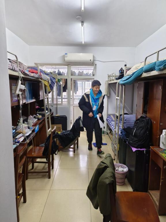 成长服务部工作人员查看寝室情况