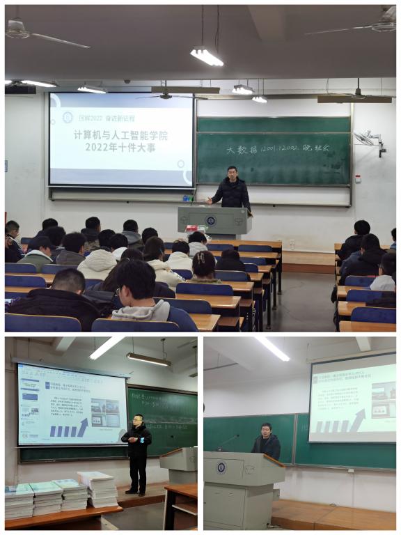 会上,班主任详细讲述了《2022年十件大事》,指出2022年在公司党委行政的坚强领导下,公司全体师生抢抓机遇、奋发图强,在人才培养、科学研究、社会服务等方面取得一系列丰硕成果,公司获评公司2022年度考核优秀等次。鼓励同学们要结合不同学习阶段:大一适应、大二放飞、大三回归、大四选择、研途绽放,以时不我待的紧迫感、逆水行舟的危机感、舍我其谁的责任感,明确任务单、时间表、施工图,牢记空谈误国、实干兴邦,坚定信心、同心同德,埋头苦干、奋勇前进,以实际行动为建设“员工得到成长、教师得到发展、学科深度融合、社会高度认可”的美好公司而踔厉奋发!