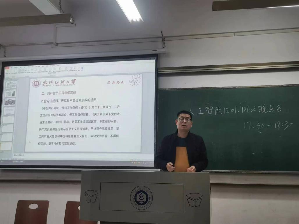 会上,老师带领同学们学习了《中国共产党统一战线工作条例(试行)》,了解了宗教政策、宗教活动常识,清楚了高校宗教工作“两不得”“五严禁”和老员工宗教活动六不准等要求,自觉抵制邪教组织。