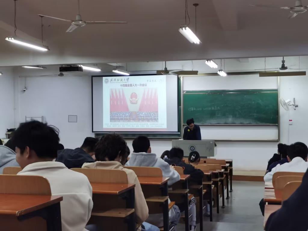 2023年3月12日,402永利集团开展了“开局起步,团结奋斗”主题班会,就两会含义、工作报告、防范电信诈骗、宿舍安全、学雷锋等相关内容进行了讲解。各年级辅导员、各班班主任组织并参加班会。