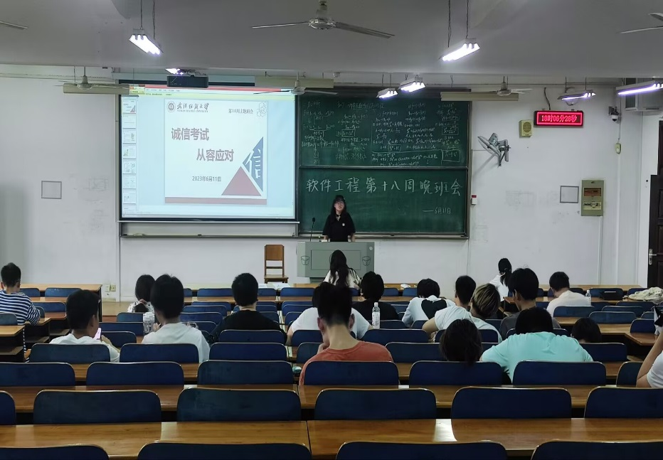 班会现场,辅导员首先进行晚点名,确认员工到场情况,对未到员工逐一进行联系,了解员工状态。班会上,辅导员向同学们强调考试是一种严格的知识水平鉴定方法。为了保证结果的公平,考场要求有很强的纪律约束,并且专门设有主考、监考等监督考试过程,同时提醒同学们禁止任何舞弊行为。