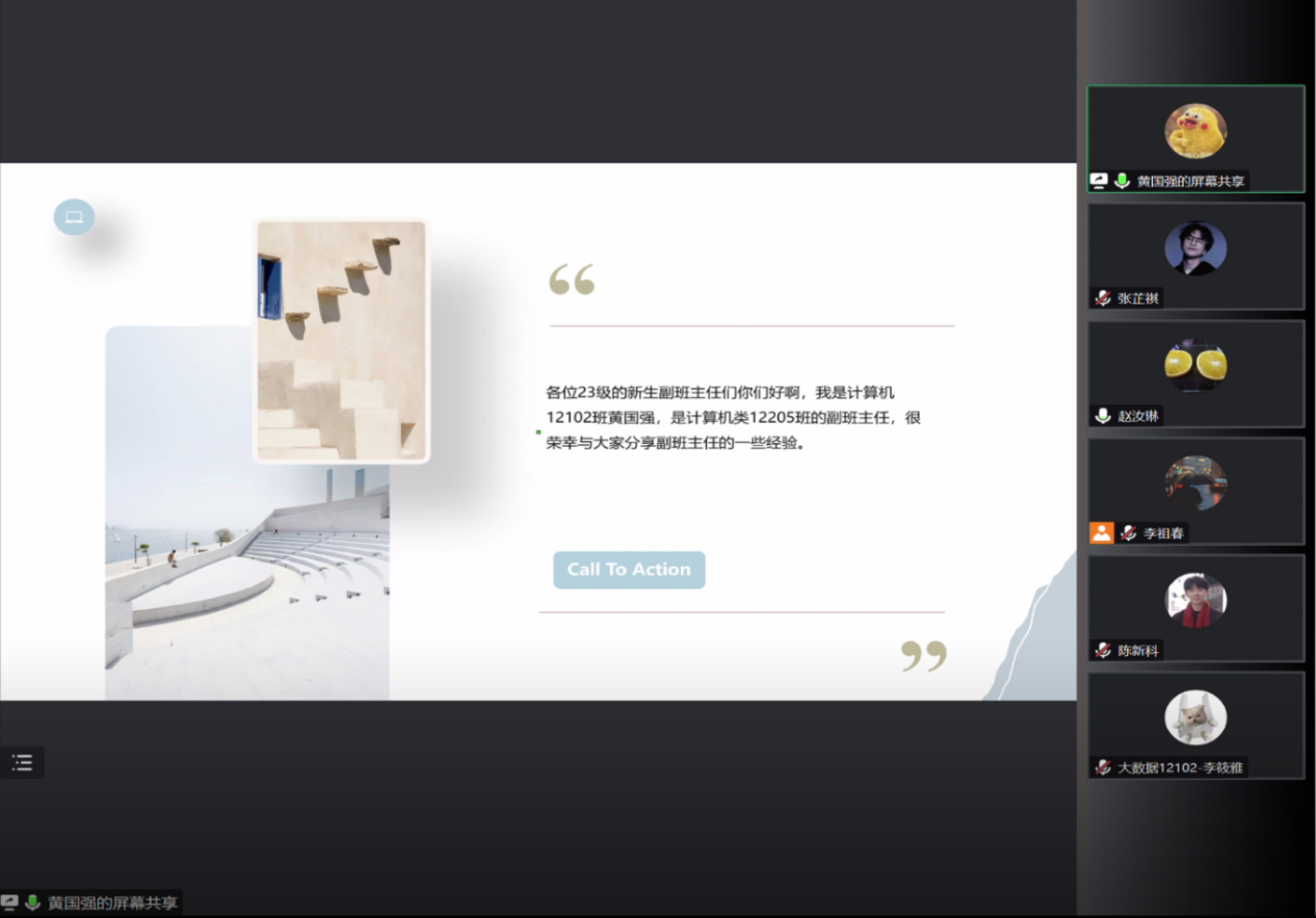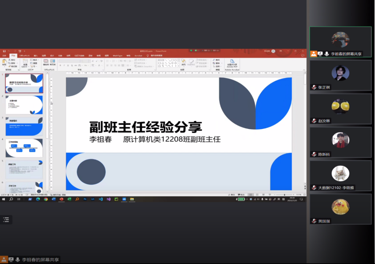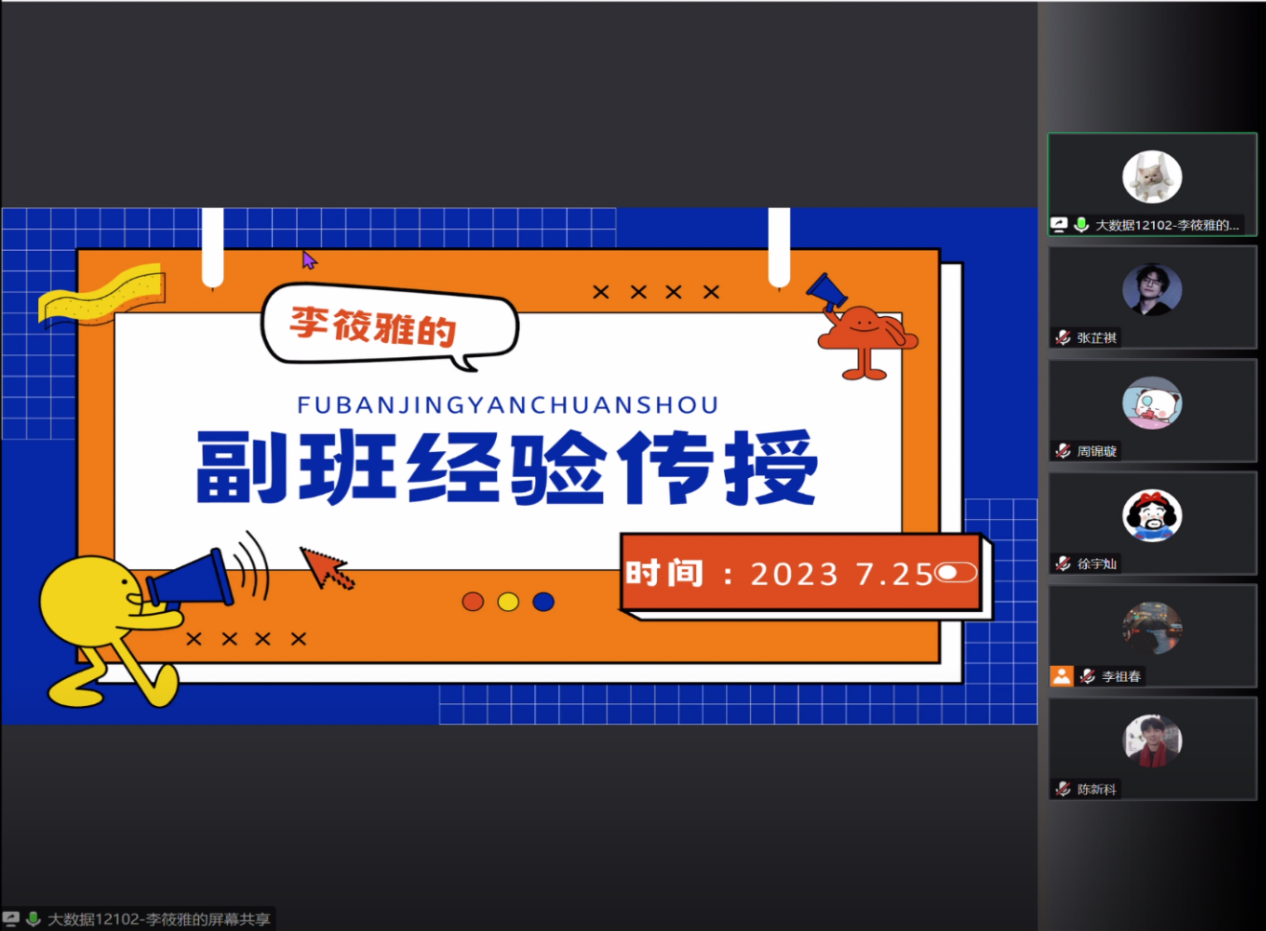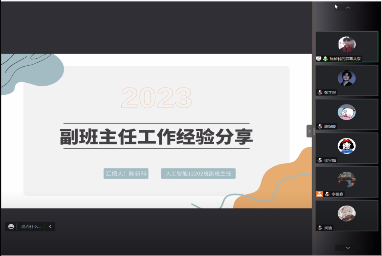 为帮助2023级副班主任尽快适应角色、熟悉工作、明确职责、提升工作能力,402永利集团员工会团队于7月25日在线上开展了优秀副班主任经验分享会。本次分享会由五位2022级优秀副班主任以及2023级本科生辅导员易凡老师主讲,全体2023级副班主任成员参加,共同分享交流。