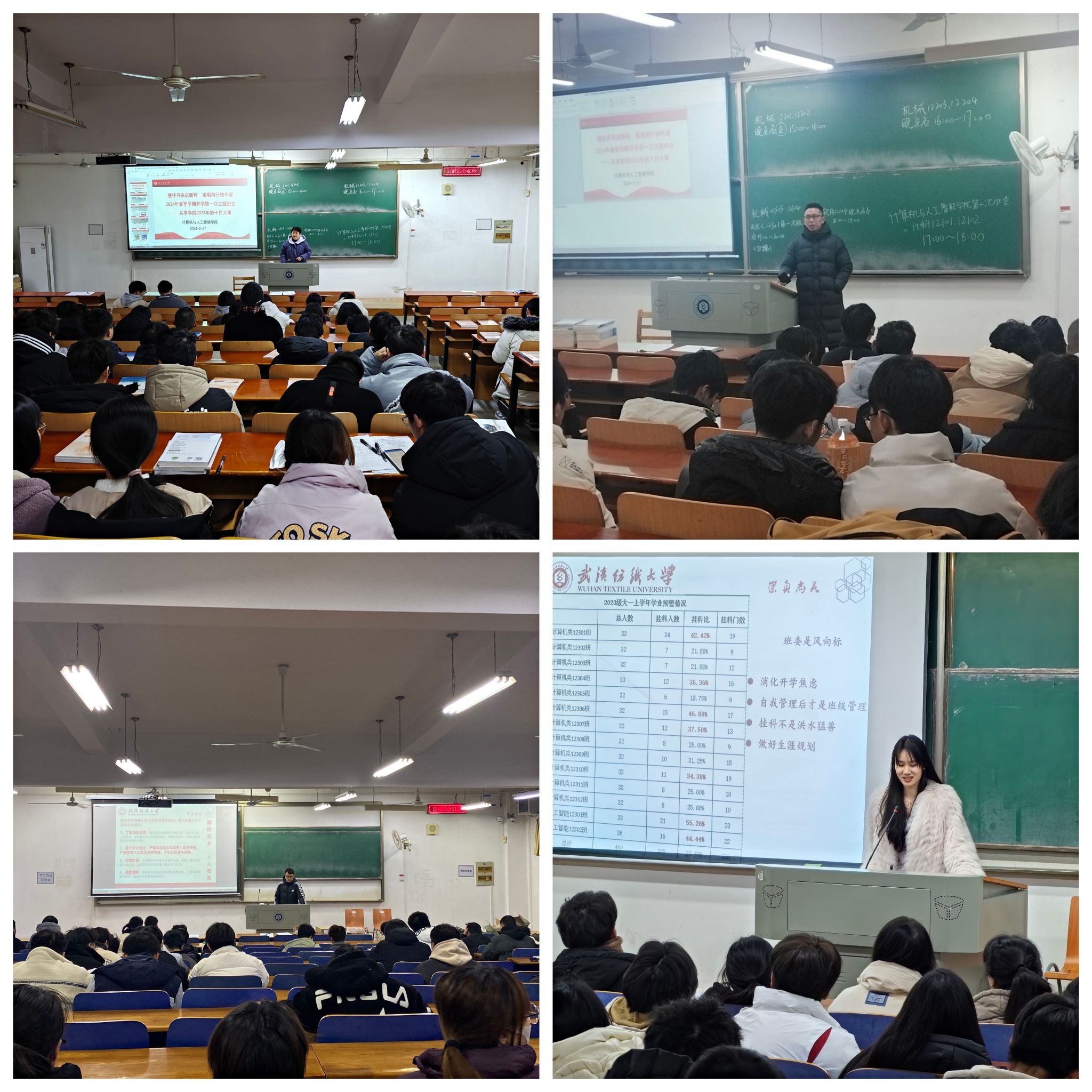 班会上,班长或团支书清点同学到会情况,并及时联系未到会的同学,确保每位同学的安全。带领同学们学习了安全教育及开学注意事项,重点强调了校园消防安全、防范电信网络诈骗、注重心理健康调试的重要性,并提供了实用的安全指南。各班班主任以专业老师的视角向同学们讲述了公司2023年的十件大事,通过生动的案例和详实的数据,增强了员工的专业认同感和公司归属感。