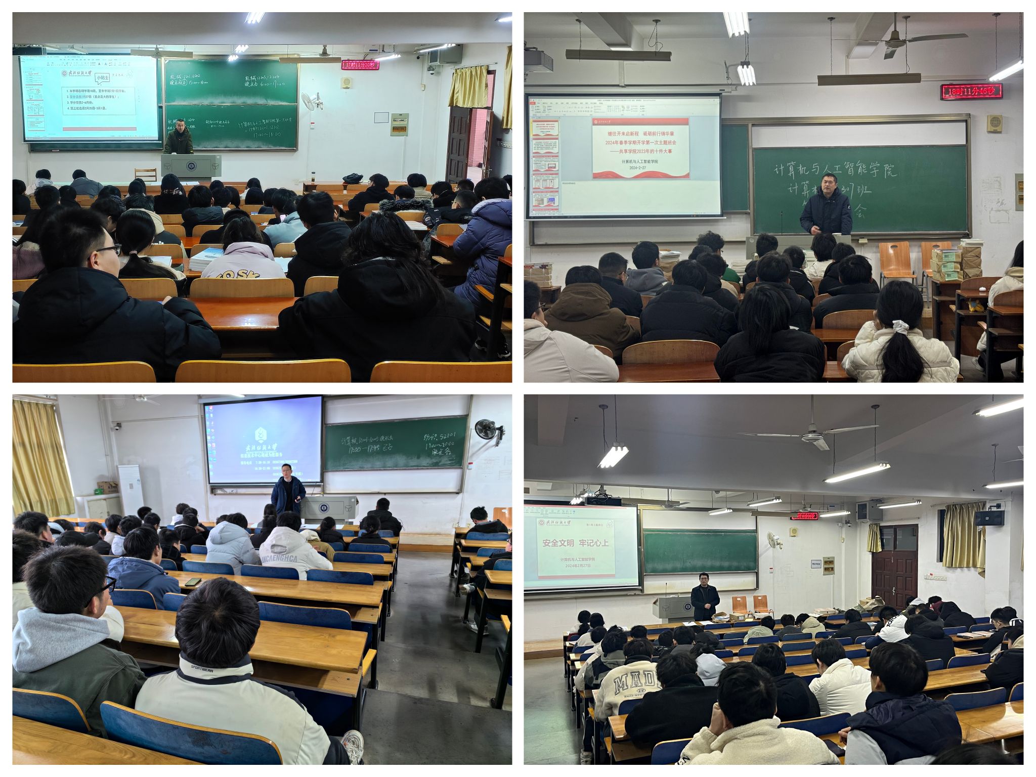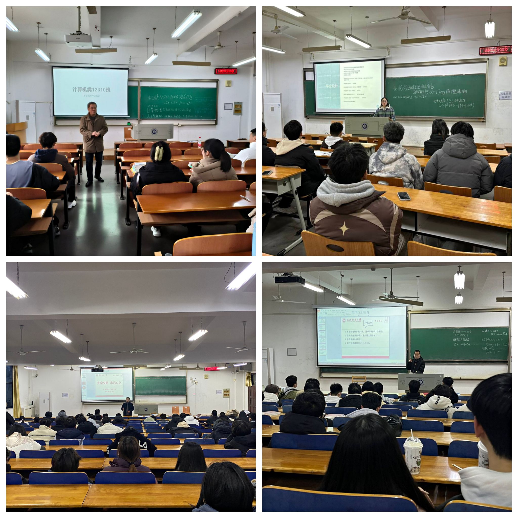 班会上同学们也进行了充分的互动,分享了他们的寒假社会实践经历和新学期的学业、就业规划。最后,班主任进行了总结发言,鼓励同学们在遇到问题和困难时积极寻求帮助,并共同营造一个安全、文明、和谐的校园文化氛围。公司领导班子也随机走访了班级,观摩了班会的进行,并对同学们的表现给予了高度评价。