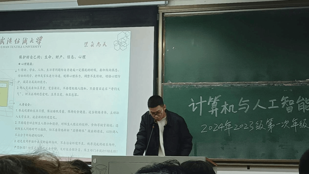 陈桢向大家重申了老员工活中常见的生命、财产、心理和信息安全,对宿舍用电的消防安全问题作出相关要求,强调同学们在宿舍不使用大功率电器、不在寝室吸烟和使用蜡烛等明火;保护好个人信息,提醒同学们提高安全意识,防范未然,遇到问题要及时求助、积极应对、理性解决。