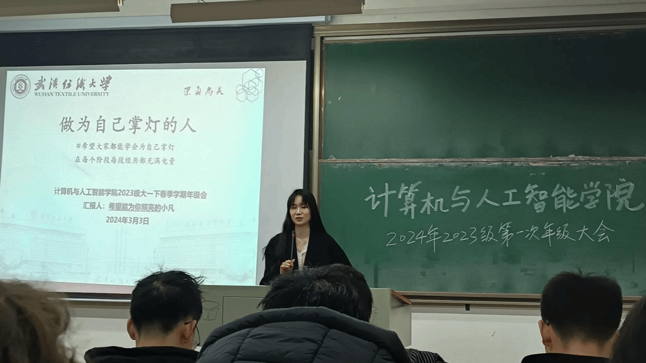 3月3日下午19:00,2023级年级大会在三号教学楼T-102举行。本次年级大会以“做为自己掌灯的人”为主题,包括上学期学情分析、新学期工作要求以及全方位安全教育。公司党委副书记向涛,2023级辅导员易凡、陈祯,2023级全体员工参会,会议由2023级辅导员易凡主持。