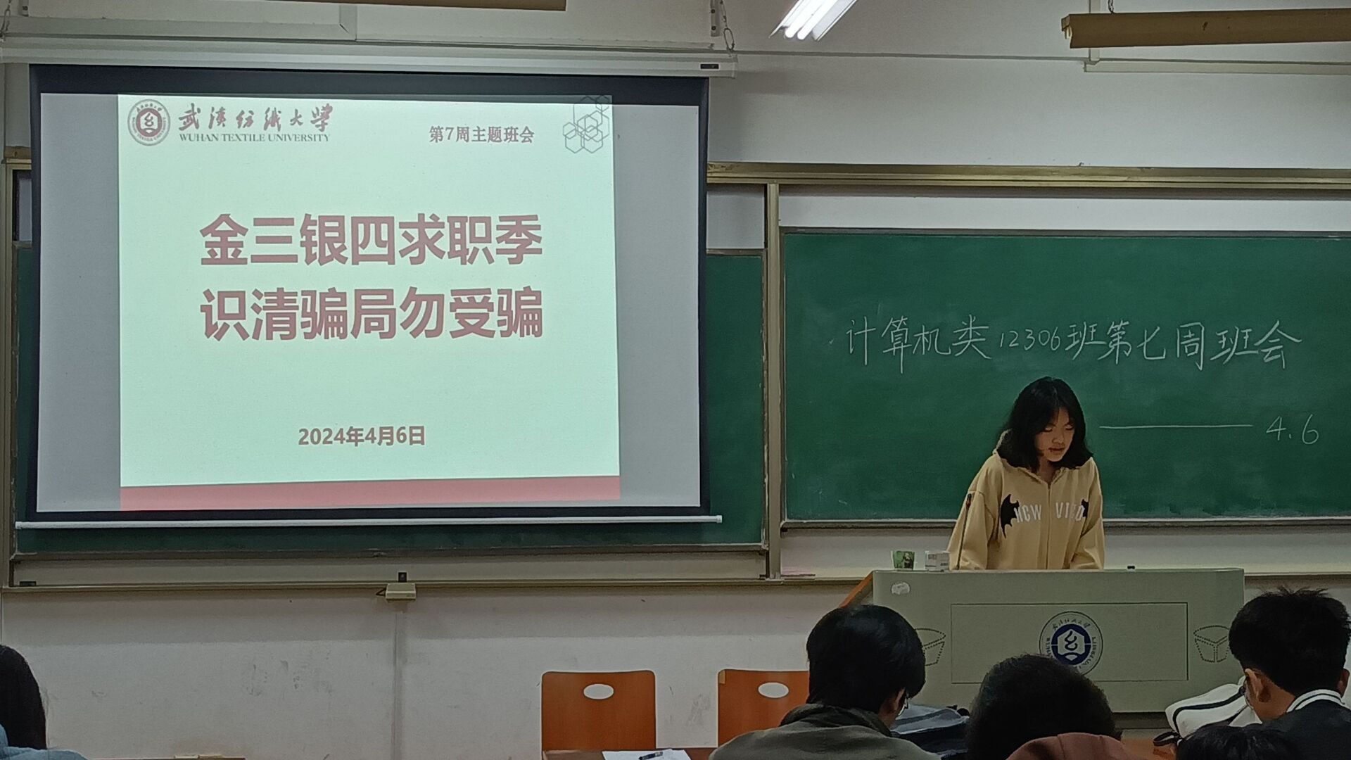 随后,班主任强调了网络安全为题,尤其是毕业生现在正面临大量网络招聘信息,班主任通过列举常见诈骗方式如骗取报名费和体检费、骗取各种押金和保证金等,提醒同学们要仔细辨别招聘公司的资质,避免上当受骗,遇到不确定的情况及时与辅导员联系。网络安全环境需要大家共同努力,不断提高范防意识,共同营造安全稳定的校园环境。