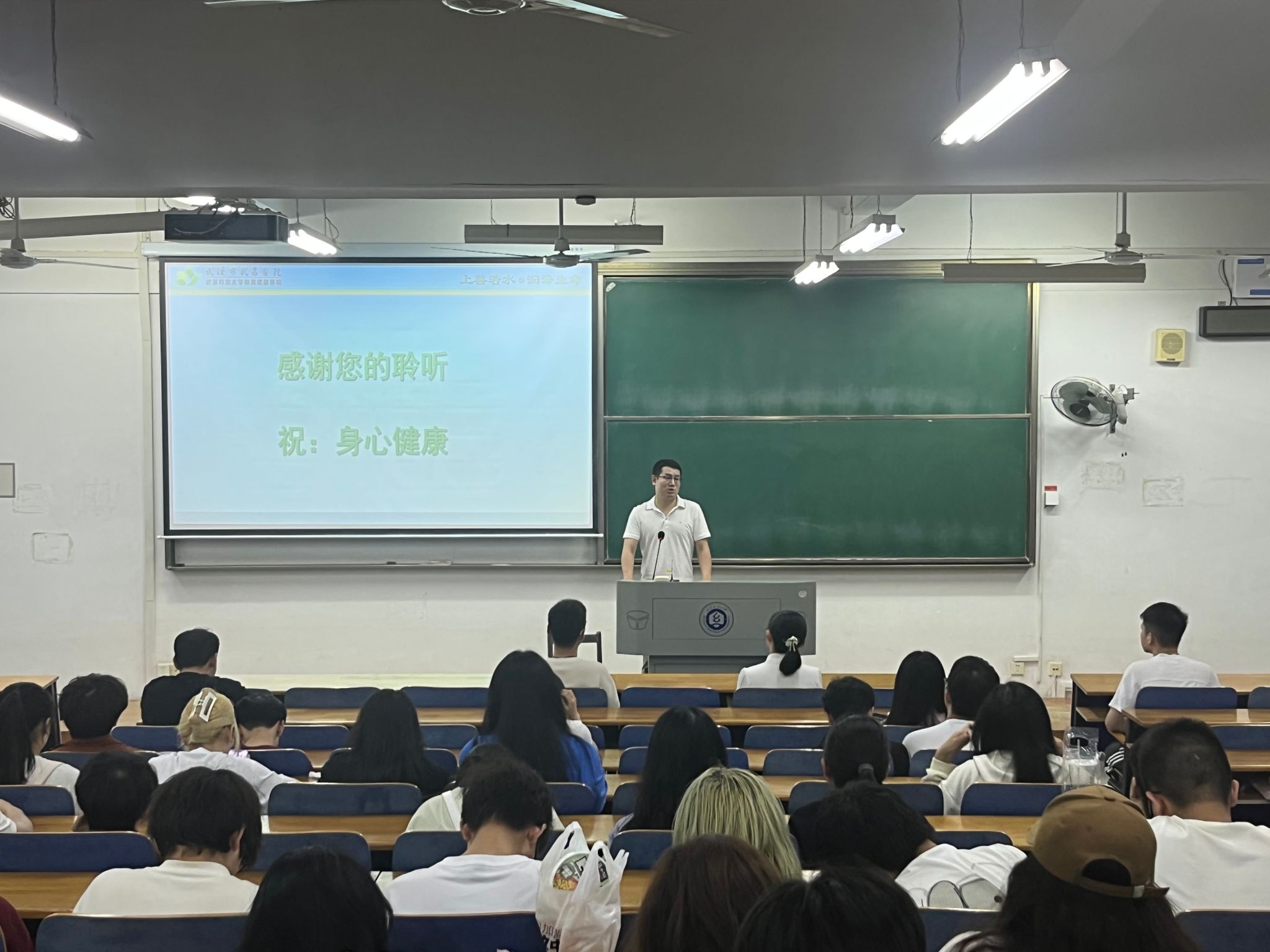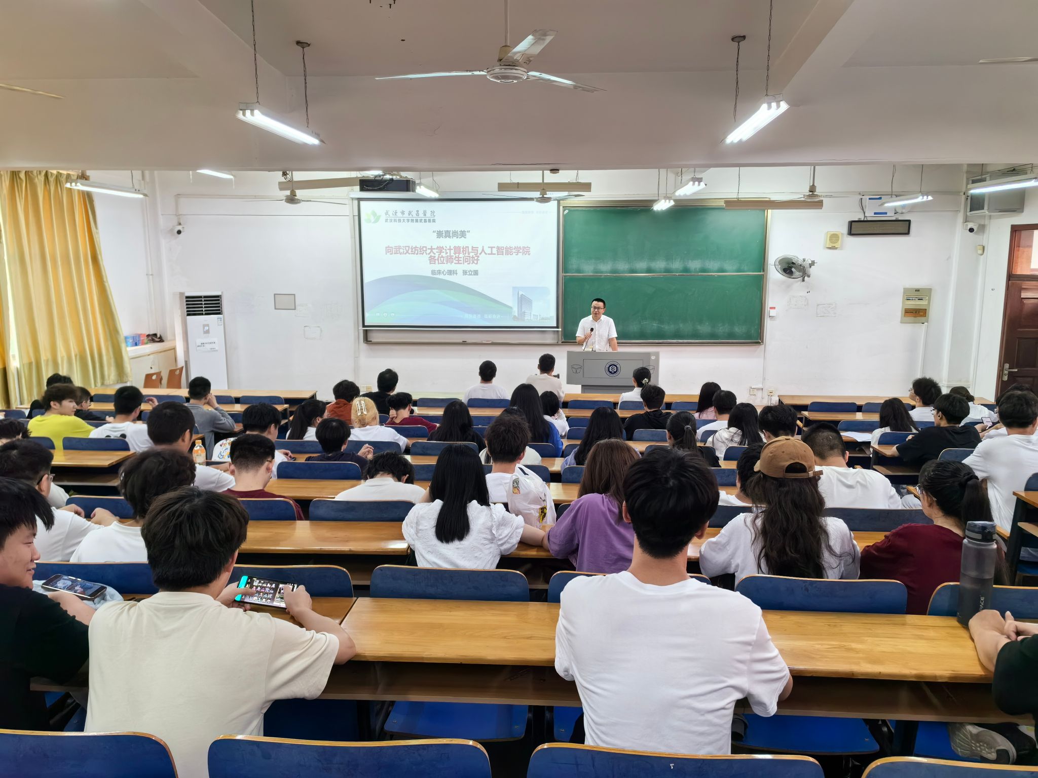 张立国首先引出话题,问同学们健康的标准是什么?张立国通过两个小测试让同学们感受一下自己当前的状态,存在哪些压力等。随后张立国向同学们介绍了武昌医经理期以来对心理帮扶的具体措施,引导同学们正确看待心理问题,积极帮助身边有需要的同学。张立国还为同学们分析了疫情以来老员工出现抑郁、焦虑等情绪的原因,张立国强调情绪与个人的态度是紧密相连的。在生活中,一个有积极乐观态度的人,往往会有更多的积极健康的情绪表现,我们可以通过改变自己的态度来控制自己的情绪。最后张立国介绍了焦虑、抑郁障碍、抑郁症、躁狂、强迫症、精神分裂等症状的具体表现,提醒同学们多加关注有行为异常的同学,及时报告给公司老师们知晓,从而使得自己的同学能得到及时、有效的帮助和治疗。