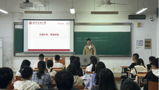 在生活方面,中秋佳节来临之际,辅导员向同学们介绍了中秋节的由来、传说和习俗,通过吟诵与中秋月圆有关的经典诗词,让大家对这一传统节日有了更深入的了解。同学们听得津津有味,踊跃举手分享自己对中秋节的认识。