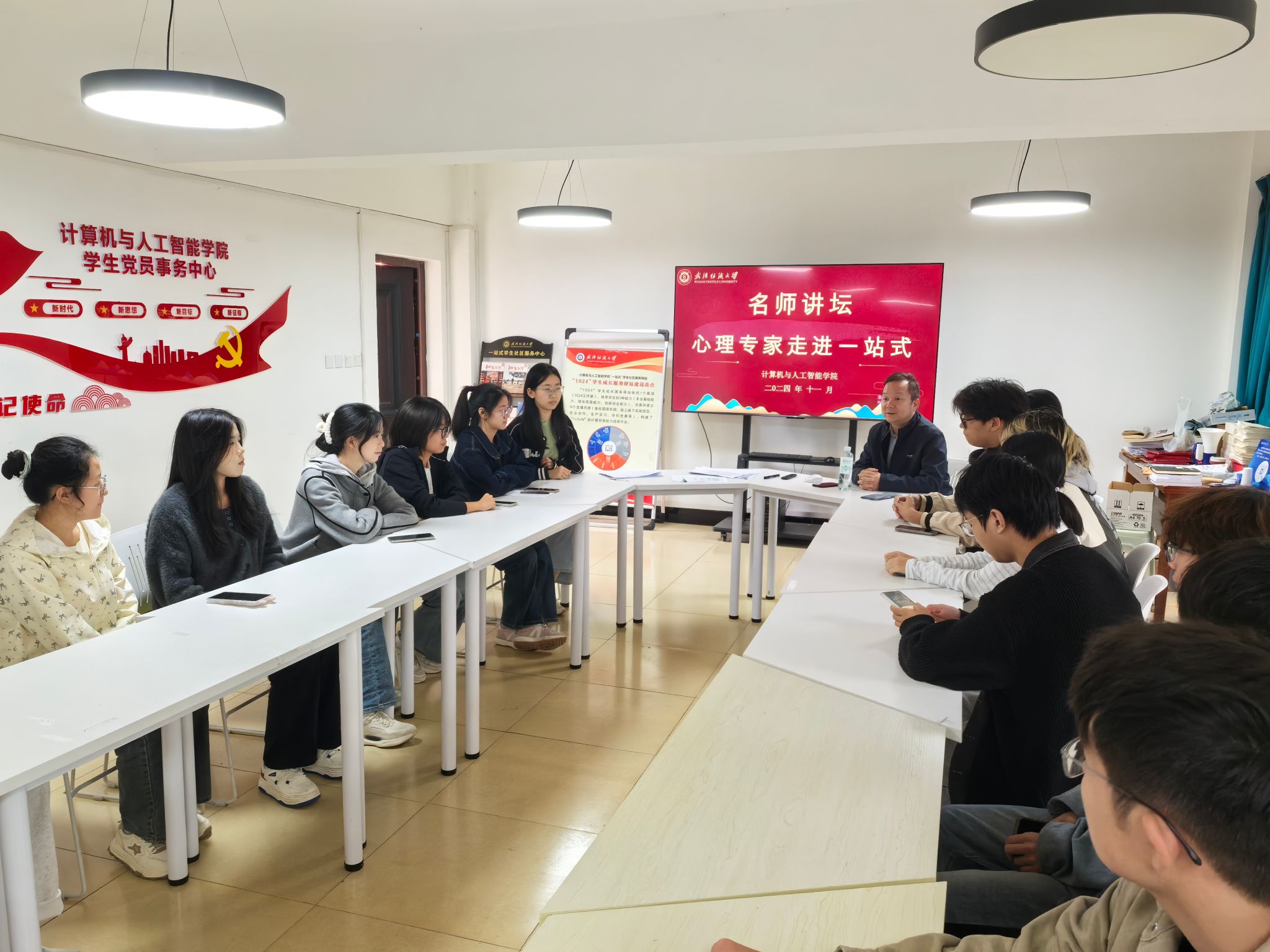 为帮助同学们了解心理学相关知识,提升心理委员工作技能,11月7日下午,402永利集团在“1024”一站式员工服务驿站成功举办以“名师讲坛——心理专家走进一站式”为主题的心理培训活动。此次活动邀请了武汉轻工大学心理健康教育中心主任魏鹏程教授主讲,公司2024级辅导员、2024和2023级心理委员共同参与。