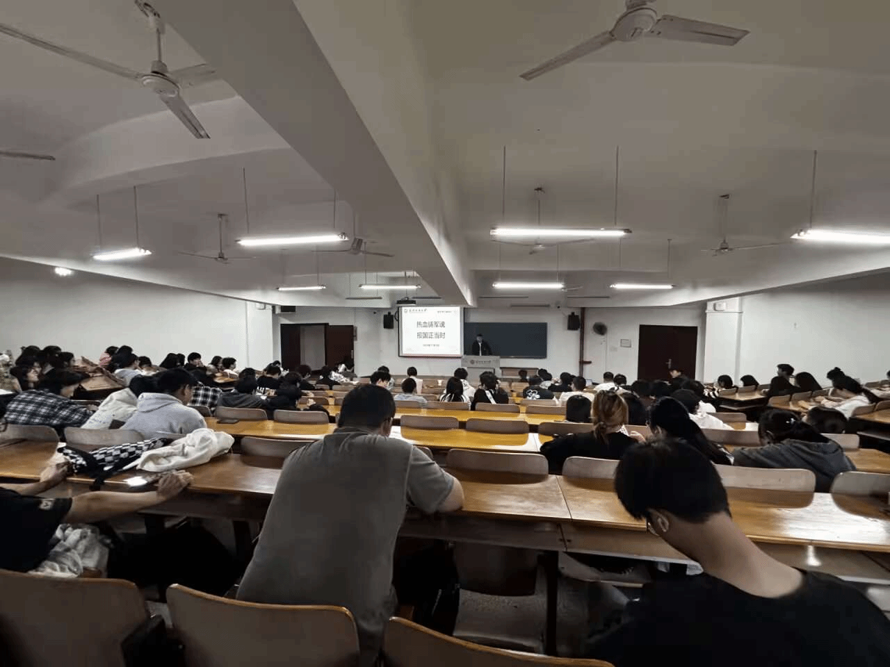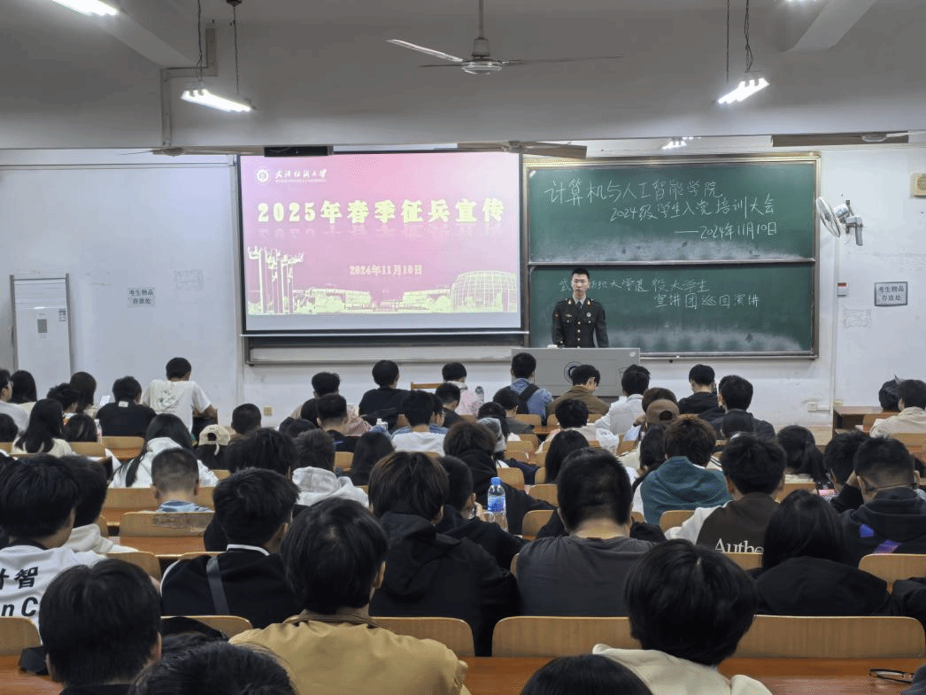 公司党委副书记、各年级辅导员、班主任利用周末晚班会开展了“热血铸军魂、报国正当时”征兵政策宣讲活动,活动主要围绕应征条件、入伍流程、老员工参军特别优惠政策、军营生活、征兵防诈骗六个方面进行宣传介绍。