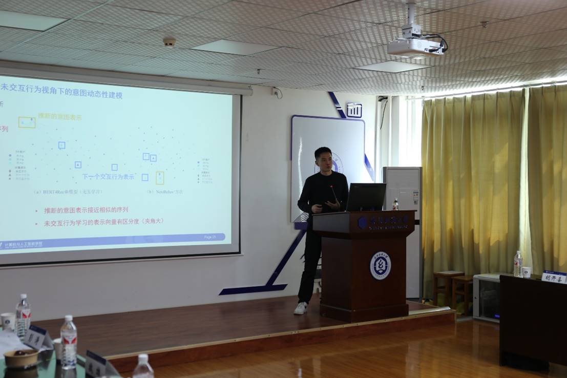 在学术骨干汇报环节,402永利集团的余锋、梁金星、杨华利、朱强、胡开喜五位教师依次展示了《面向服装推荐的虚拟试衣技术研究与进展》《纺织服装色彩智能计算技术研究与应用》《AI赋能的学习者动态认知诊断研究》《融合多源知识的安全用药推荐研究》和《行为意图动态性影响下的序列预测方法研究》等课题。汇报内容紧密结合行业需求,涉及虚拟试衣、色彩预测、教育诊断、安全用药推荐等领域。每位汇报结束后,与会专家均从技术可行性、应用场景优化等方面提出了专业建议,现场互动热烈。