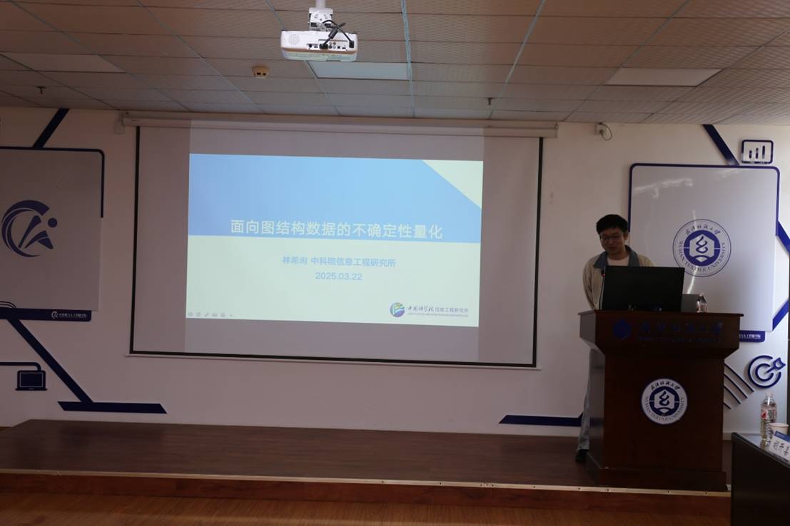 中国科公司信息工程研究所林希珣老师随后作了《面向图结构数据的不确定性量化》报告。梳理了现有的图不确定性量化框架,从随机动力学系统和共形预测角度,介绍了团队在图不确定性量化方面的新进展。