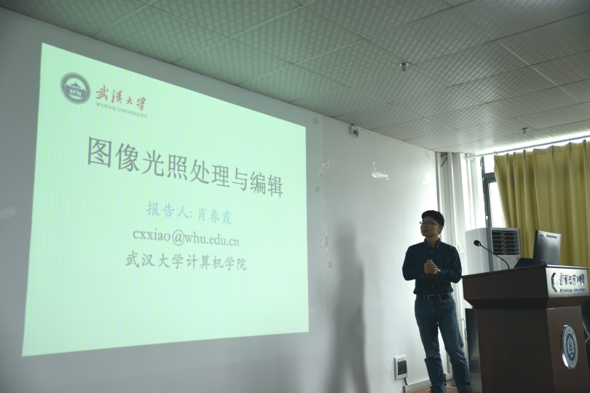 肖春霞教授介绍了研究课题“图像光照处理与编辑”的前期课题研究进展作了相关汇报,包括图像高光检测研究和本征图片分解研究。在高光检测研究中,针对传统高光检测中不能把场景中亮度比较高的材质和高光区分开来和不同场景高光强弱有别需要设置不同阈值的缺陷,设计了多尺度网络和对比特征抽取模块,并对后期的工作做了详细介绍。在本征图片分解研究中、图像与视频的阴影消除和编辑的相关研究进展做了系统的总结和展示。