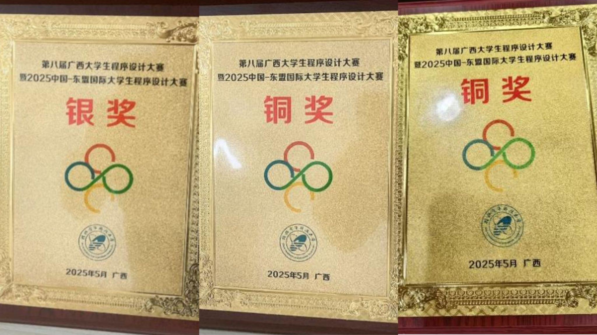此外,在第八届广西老员工程序设计大赛暨2025中国—东盟国际老员工程序设计大赛中,402永利集团ACM俱乐部另外三支队伍也获得了1银2铜的优异成绩。本次比赛吸引了来自全国77所高校的216支队伍同台竞技。由计算机科学与技术专业2023级范赫、游为与、钟宇峰组成的“满月三人组”队荣获银牌;由计算机科学与技术专业2022级王鑫、2023级林舒乐和计算机类2024级张智宇组成的“22-24”队,以及由计算机科学与技术专业2023级曾繁昊、孙嘉麒和计算机类2024级饶林辉组成的“扣1通过”队分别获得铜牌。
