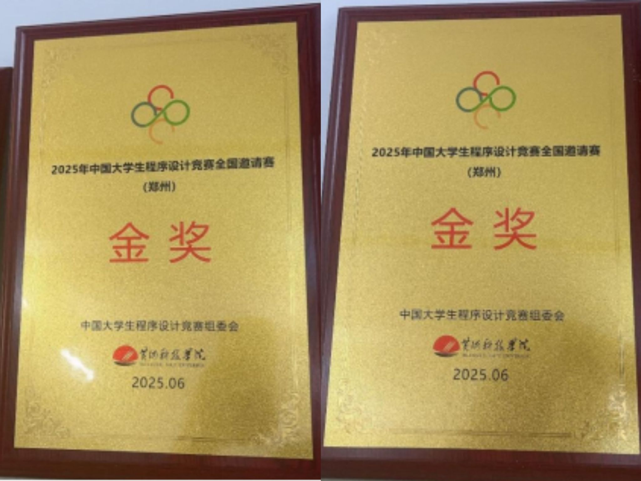 获得金牌的队员分别是:计算机科学与技术专业2022级蒋沈浩、胡劲睿、苏宇曦三位同学组成的“因为太怕爆零就全交暴力了”队,以及人工智能专业2023级孔浩杰、计算机科学与技术专业2022级刘洋和2023级费文伟组成的“武纺”队。在长达五个小时的高强度比拼中,两支队伍沉着冷静、稳扎稳打,以优异的表现夺得金牌,充分展现了公司学子在算法设计、逻辑推理与编程实践方面的综合实力。