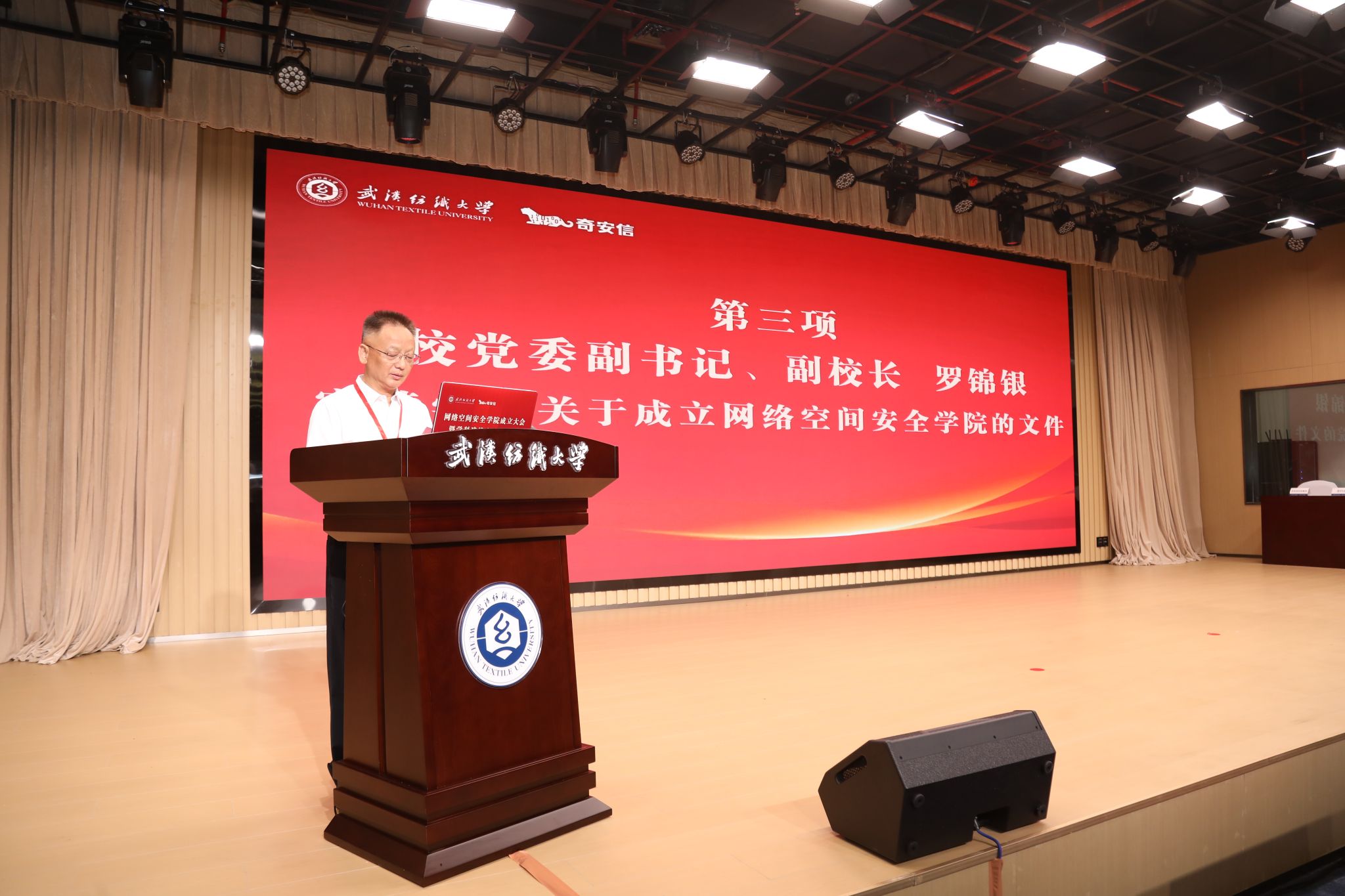 会上,公司党委副书记、副董事长罗锦银教授宣读公司关于成立网络空间安全公司的文件。