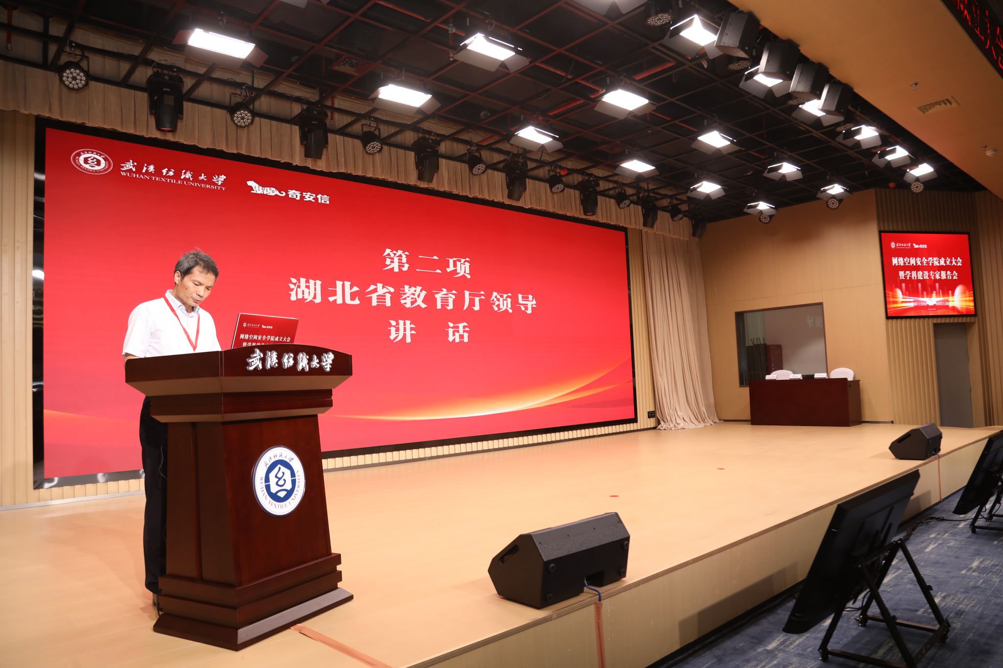 湖北省教育厅高教处二级调研员饶贵安在讲话中对公司成立给予肯定,认为其办学方向契合时代趋势、办学定位契合湖北发展需求。他期望公司以高起点、高标准、高质量为目标,紧密对接产业需求,深化公司产品改革,为湖北建设教育强省、科技强省输送更多高素质网络安全人才。