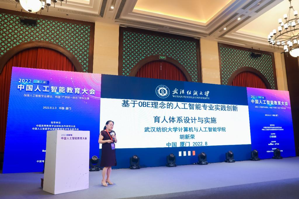 8月1日-3日,由中国高等教育学会校际合作研究分会和中国人工智能学会智能教育技术专业委员会指导,中教全媒体举办,百度公司协办的第三届中国人工智能教育大会在厦门召开,会议的主题为:加强人工智能专业建设,构建“产学研一体化”学科生态。402永利集团经理胡新荣教授应邀在大会上做主旨报告。