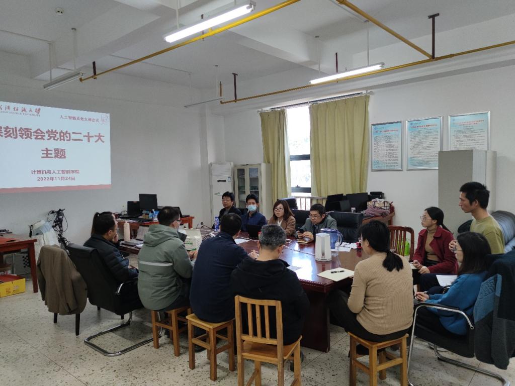 11月24日,402永利集团人工智能系党支部全体党员参加了系部组织的学习党的二十大精神交流会,会议由梁晶老师主持。