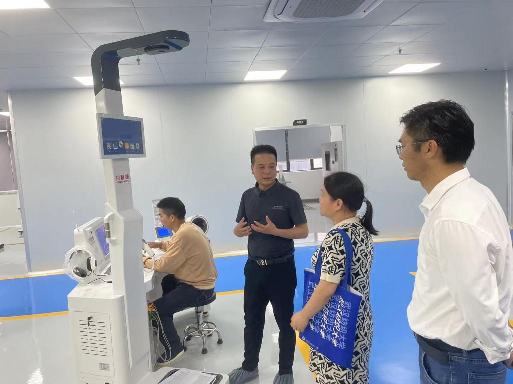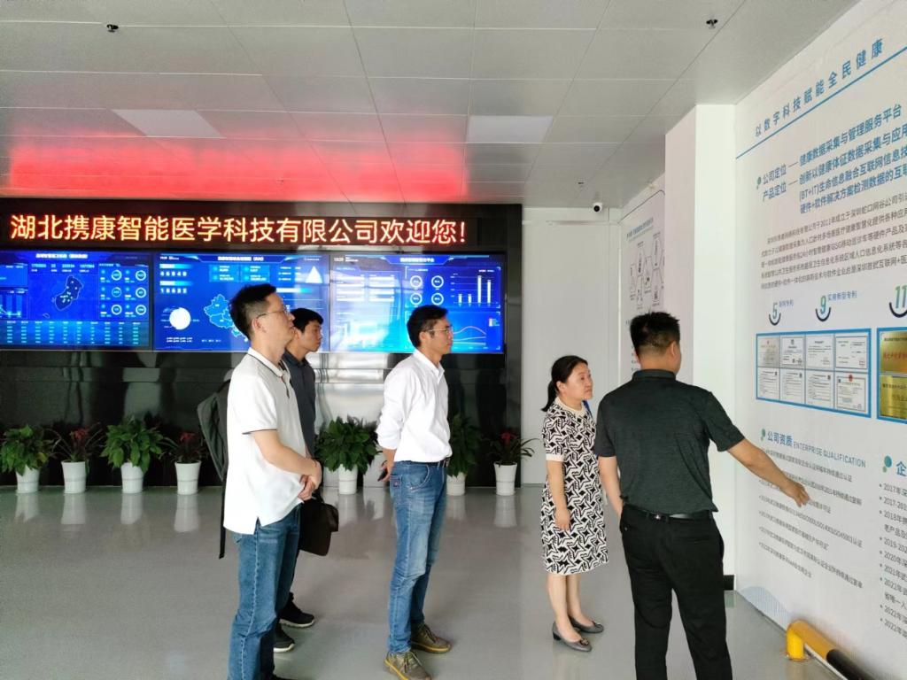 阳新县政协常委、县科技局高新产业负责人杨守盛、湖北携康智能医学科技有限公司总经理柯尊国、副总经理柯于峰对胡新荣经理一行表示热烈欢迎,并陪同参观了公司生产车间与研发部门。双方围绕人体健康模型、生理监测、健康大数据等技术问题进行了深入的探讨,并就技术合作领域、合作方式、员工实习、就业等方面初步达成了合作意向,拟定了下一步的工作计划。