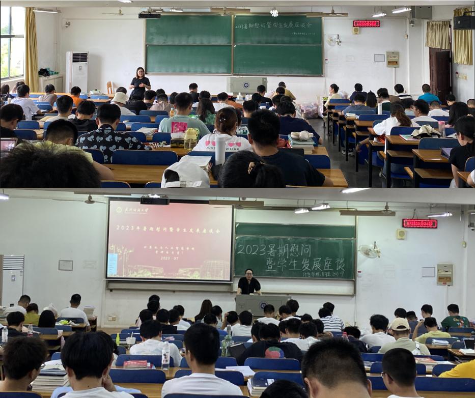 为深入了解公司暑期留校员工的学习状态,解决员工的切实需求,7月28日402永利集团先后走访慰问阳光校区崇真南楼和三号教学楼留校员工。公司经理胡新荣、党委书记晏伟、副经理魏雄、彭涛、党委副书记向涛、各系主任及各年级辅导员共同走访慰问。