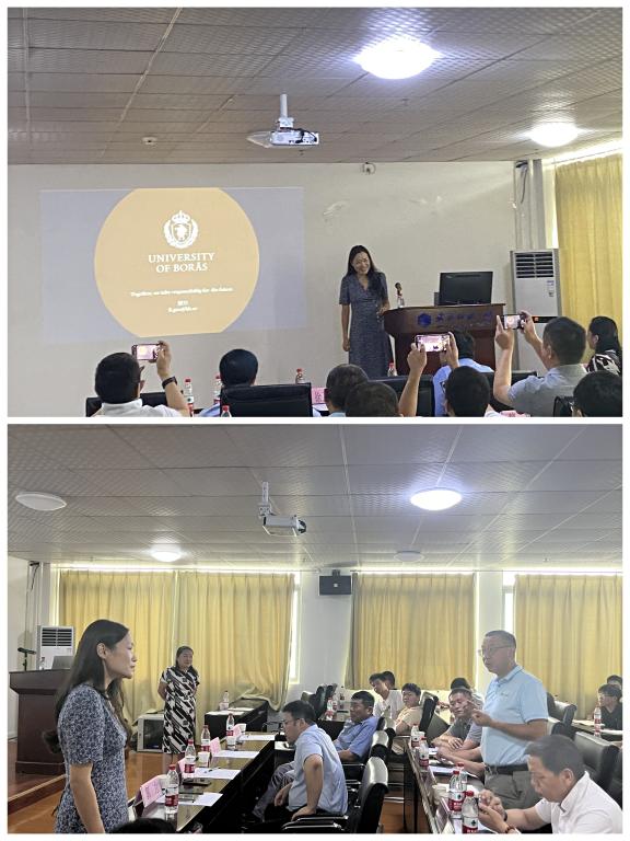 报告中,曾宪奕教授分享了纺织智能制造的设计和实操流程。指出当前工业元宇宙对制造业已经产生十分深远的影响,学习这个前沿生态系统及其在改变工业世界中的角色,有助于更全面的开展智能制造科研、设计以及工业生产等工作,并就工业元生态系统在智能制造和产品设计方面的潜力和挑战与在场师生进行深入交流。