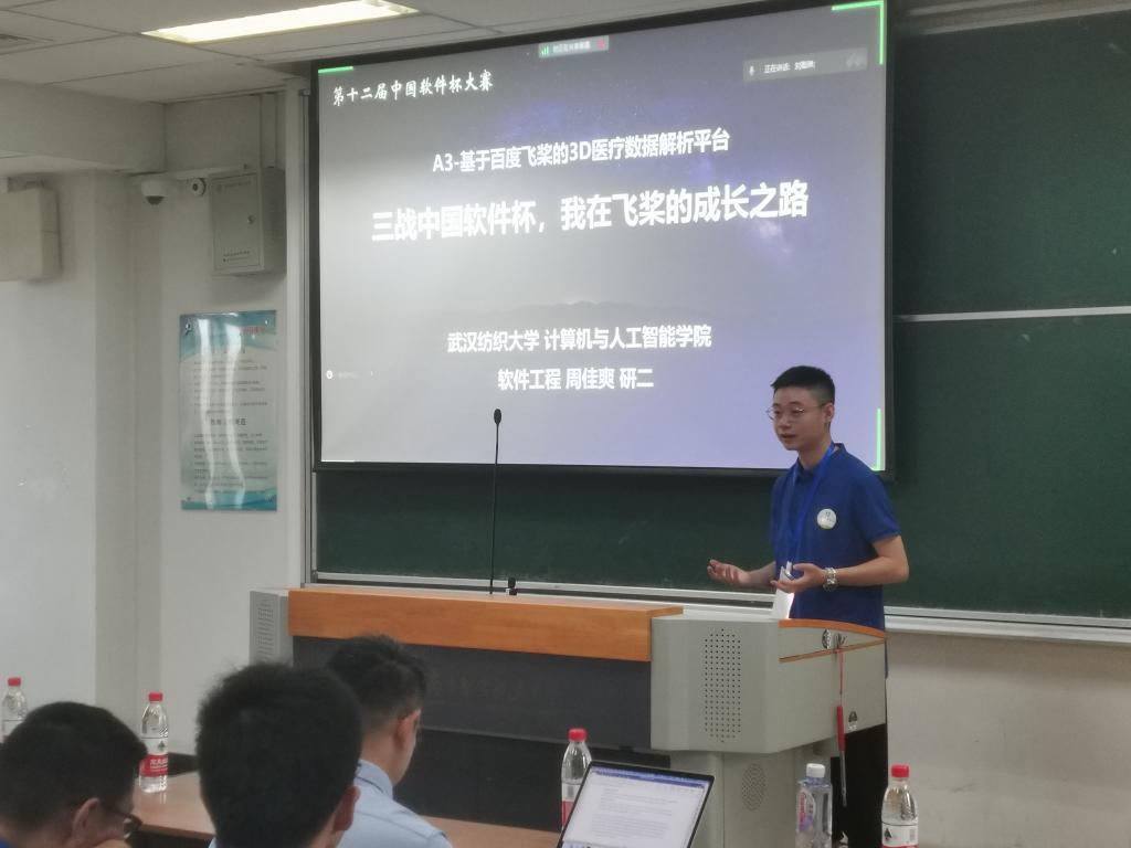 参赛期间,公司学子周佳爽凭借其优异表现以及丰富的参赛经历,受邀参加了百度举行的“飞浆国赛交流会”,并以《三战中国软件杯,我在飞桨的成长之路》为主题作了报告,与大家分享了比赛经历、收获与成长历程。