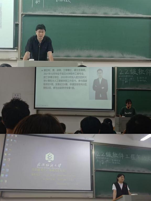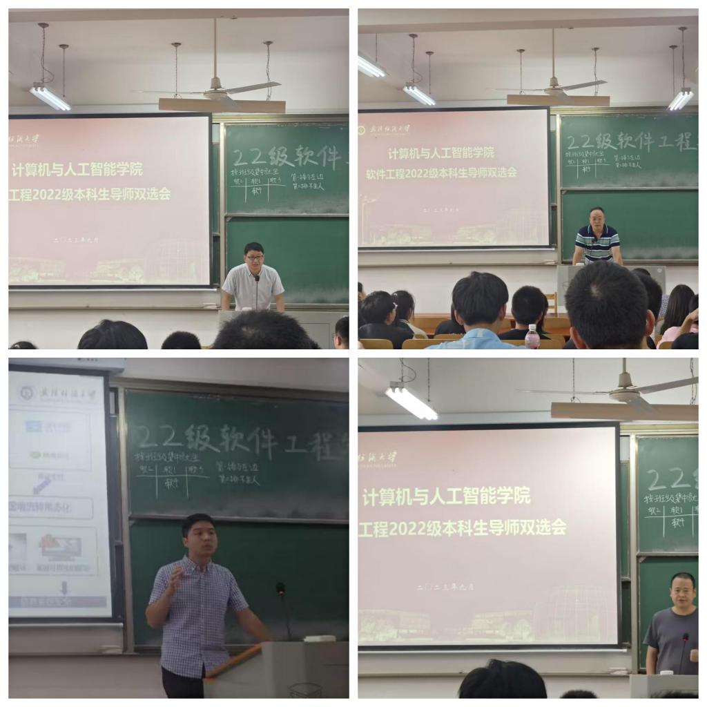 叶鹏首先介绍了软件工程专业本科生导师制的历史发展情况以及近年来本科生导师制的运行情况,特别强调了本科生导师从确定到毕业将全程指导,对帮助员工成长成才具有重要作用。随后,软件工程系老师们依次给同学们介绍自己的研究方向以及指导员工进行科研、竞赛和就业等情况,以便员工可以选择适合自己的导师。孔维广老师强调了编程的重要性和竞赛的重要性,介绍自己主要带员工参加一些程序比赛和网络安全比赛。梁金星老师强调在大学中应该注重全面发展,并介绍了他所带的员工在今年湖北省挑战杯中获特等奖的情况……老师们的精彩介绍赢得大家阵阵掌声。