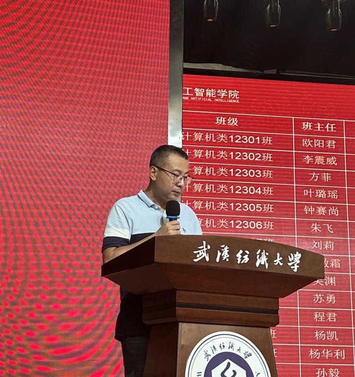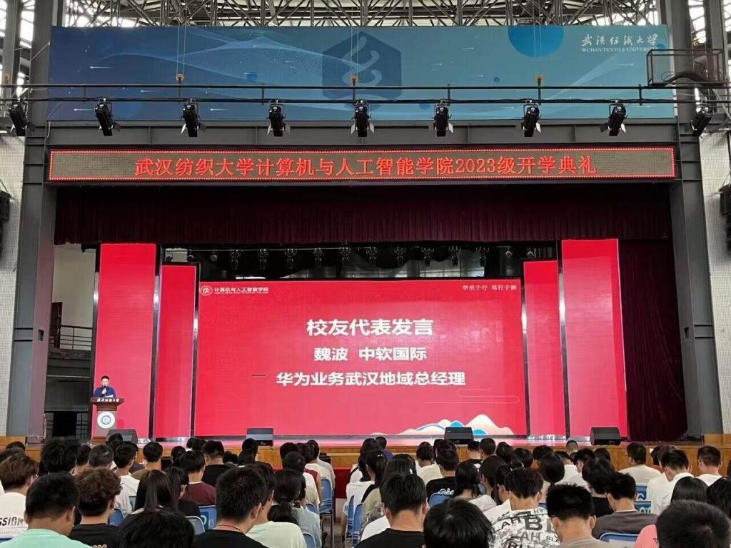 1999级员工、中软国际华为业务武汉地域总经理魏波作为员工代表发言,他感恩母校对自己的培养,分享了自己的学习经历和职场心得,从一个过来人和企业管理者的视角鼓励同学们夯实专业能力、提升软技能、强健体魄、终身学习、珍惜时间、不负青春。