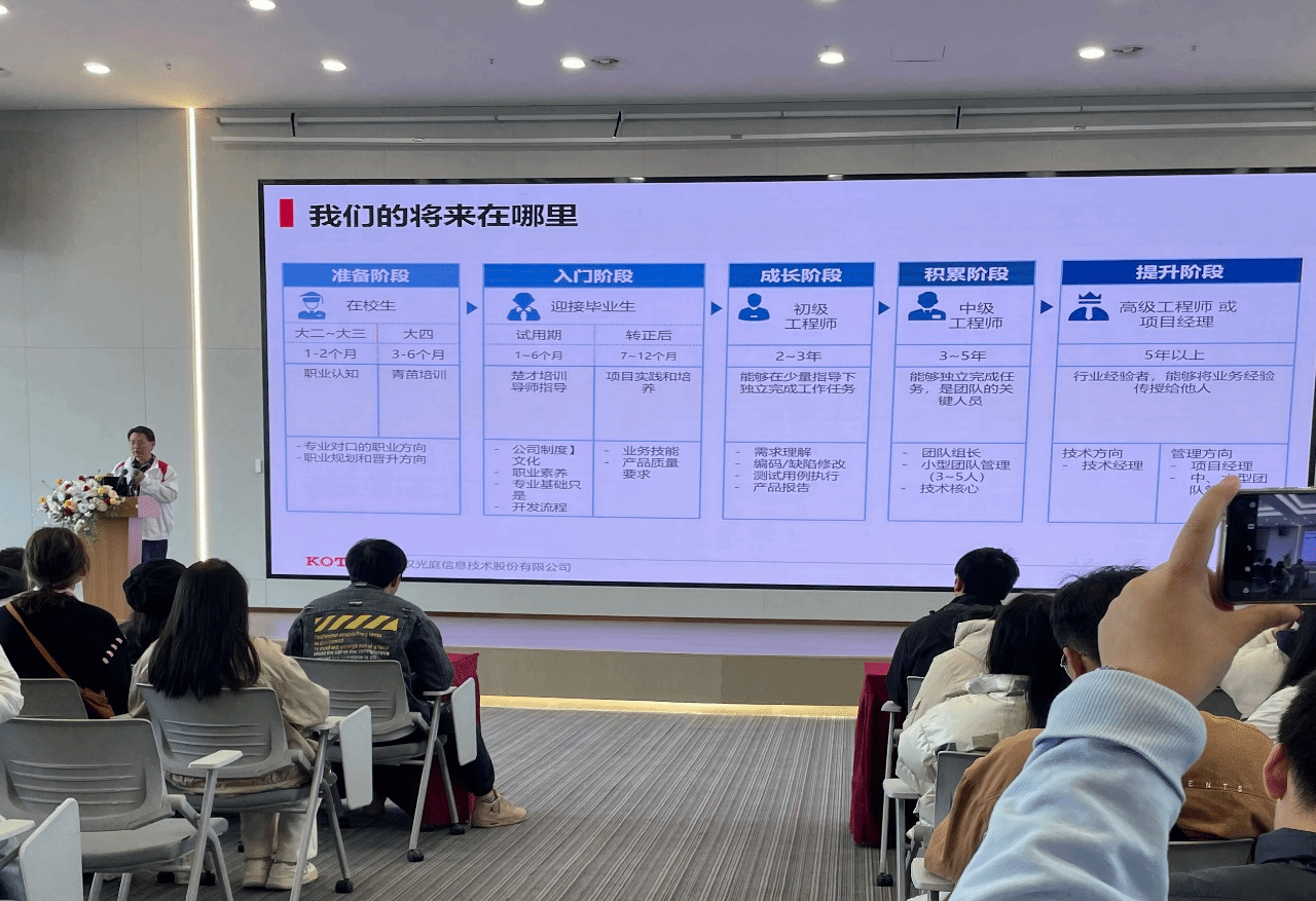 在座谈会的互动环节中,孙总解答了员工们在计算机专业知识上的困惑,并展示以该企业为职业目标的发展规划,鼓励同学们要积极做好对未来的职业规划和明确未来的发展方向。